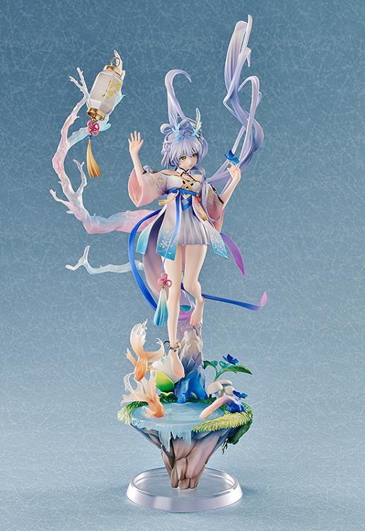 The wind passes the treetops and flowers sway on the branches. Spin a song and let it echo in your ears. The spirits that live in the secret forests of the East resonate with all things through their singing voices. Presenting a new 1/7 scale figure of Luo Tianyi in an Eastern fantasy style costume. Descending from the sky, her delicate hair and outfit flow in the wind and her sparkling eyes appear like those of an innocent fawn. Crystal branches, ginkgo lanterns, plants and trees in the shape of Tian Dian and water spirits transformed into goldfish... In this landscape of clouds and haze, the mysterious creatures of the secret forest live life to its fullest. Be sure to add the elegant Luo Tianyi in her spirit form to your collection!