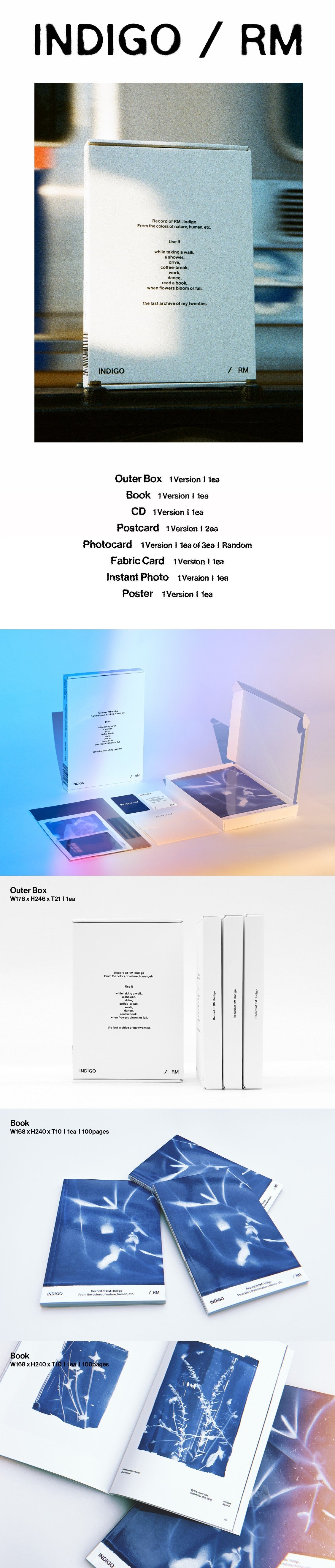 - 1 type in total - Outbox: 1 type / W176 x H246 x T21 - Booklet: 1 type / W168 x H240 x T10 I 100 pages - Postcard: 2 types / W125 x H185 - Photo card: Random 1 out of 3 types / W85 x H55 - Fabric Card: 1 type / W85 x H55 - CD Envelope: 1 type / W125 x H125 - 1 CD - Instant Photo: 1 type / W113 x H90 - Poster: 1 type / W330 x H446