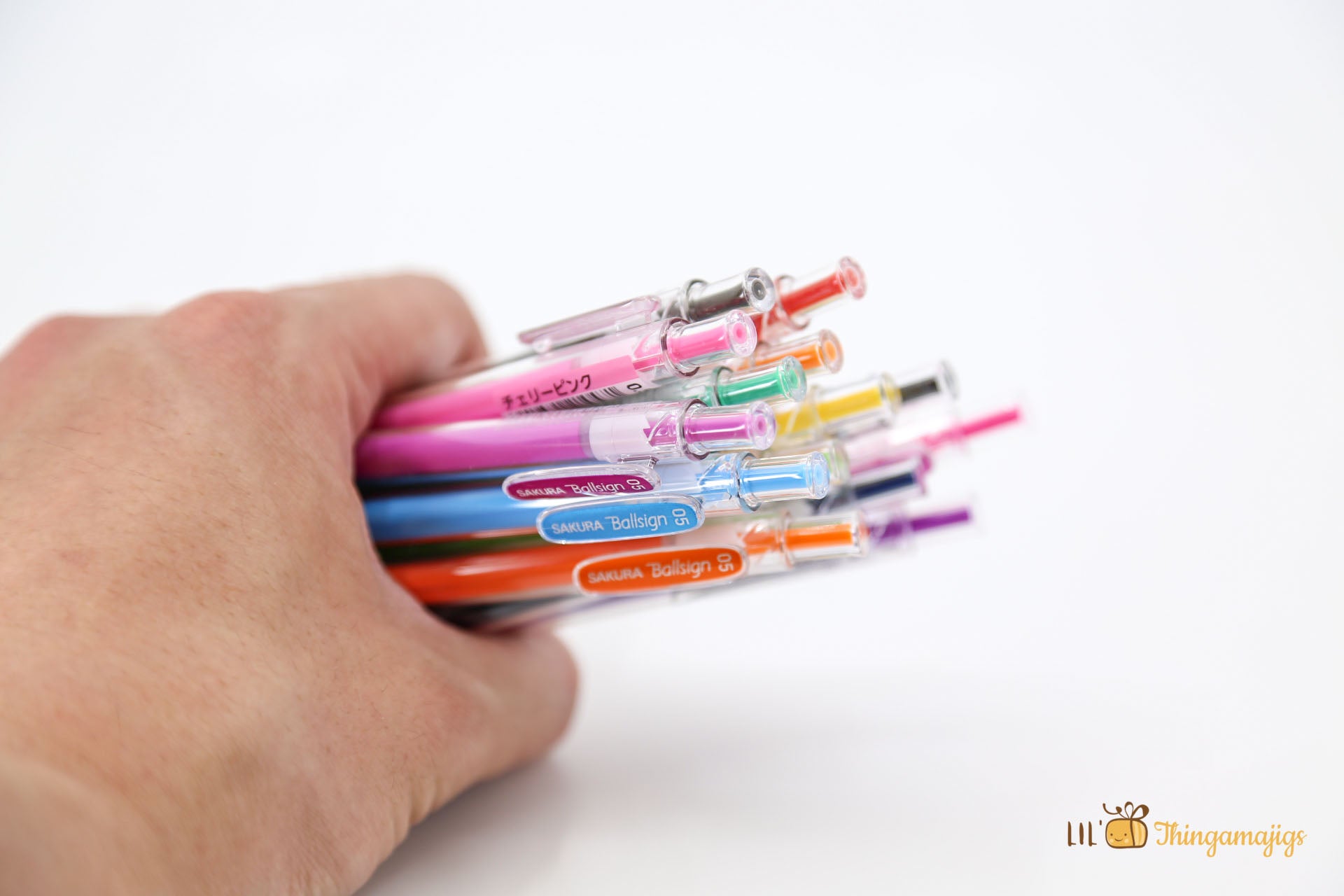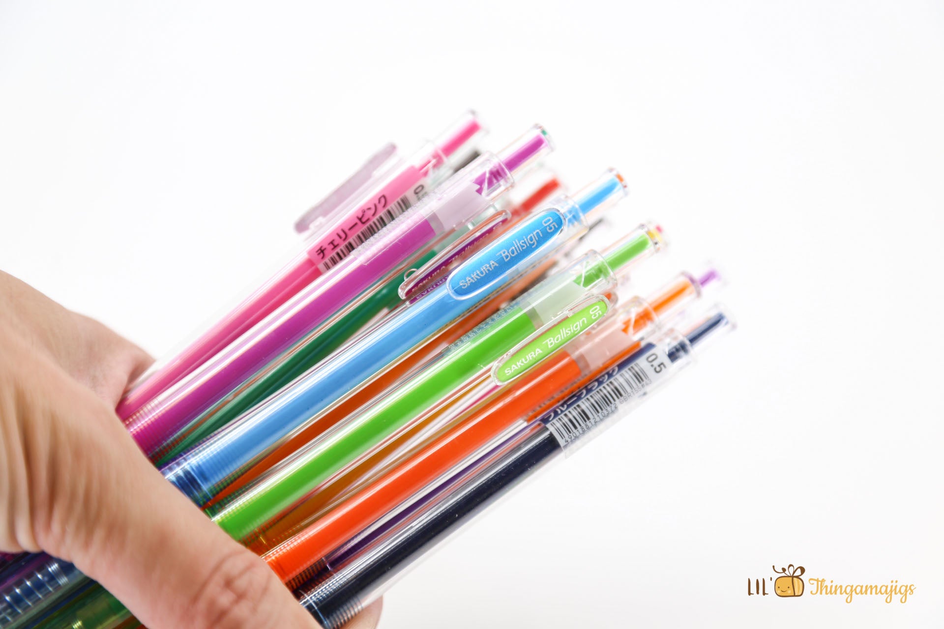 Sakura Ballsign Retractable Gel Pen - 0.5mm features a slick, transparent body that is smooth. The slimness and the small clip make it a perfect accessory for a bag or notebook. With a wide range of vibrant ink colors to choose from, they are great for detailed notes, colorful drawings, or birthday cards.