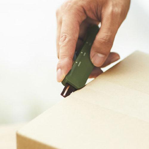 Slide mechanism that does not require a cap. By lightly pressing and sliding the handle, you can quickly switch between "unpacking cutter mode" and "scissors mode" with one hand.