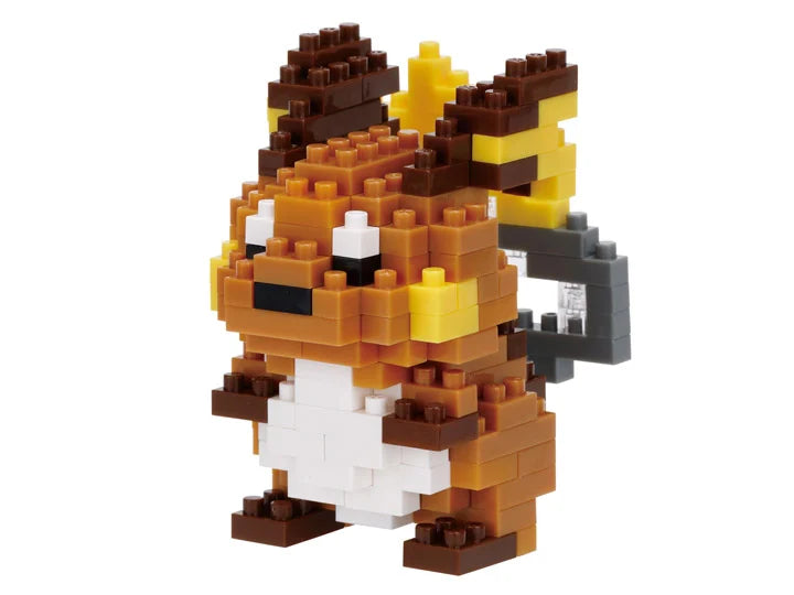 Raichu from Nanoblock's Pokémon Series stands approximately 2.20" tall and has 170 pieces. Difficulty level is 2. This kit features all the details one would expect.