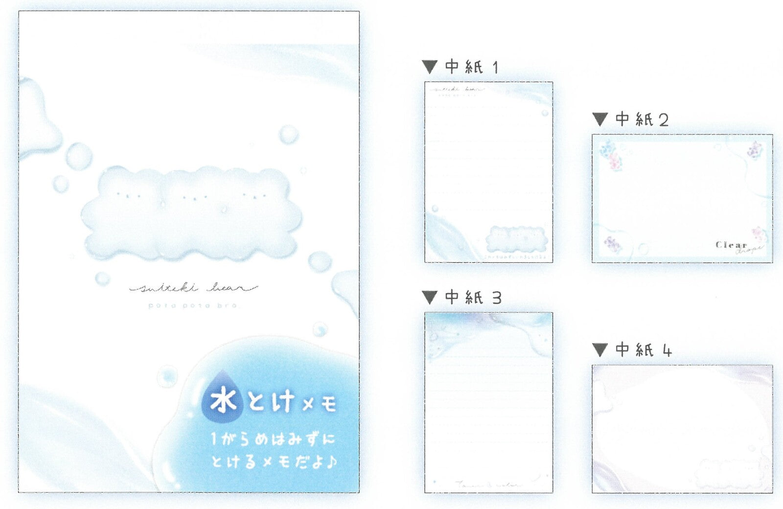 Kamio Japan Water-Soluble Chill Drop Memo Pad (Suiteki Bear 214560)