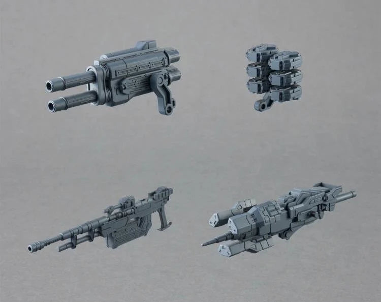 The head, core, arms, and legs each use a common structure for the series and you can enjoy assembling as a plastic model, as seen based on the original source material. A 3mm joint is used for attaching both shoulder weapons and some left-handed weapons, which can be used for various displays.