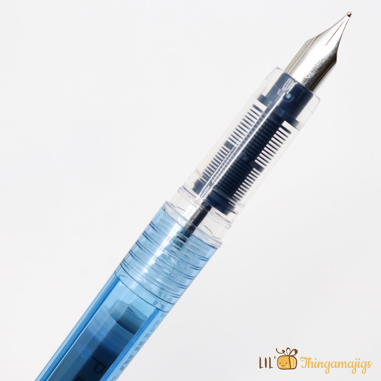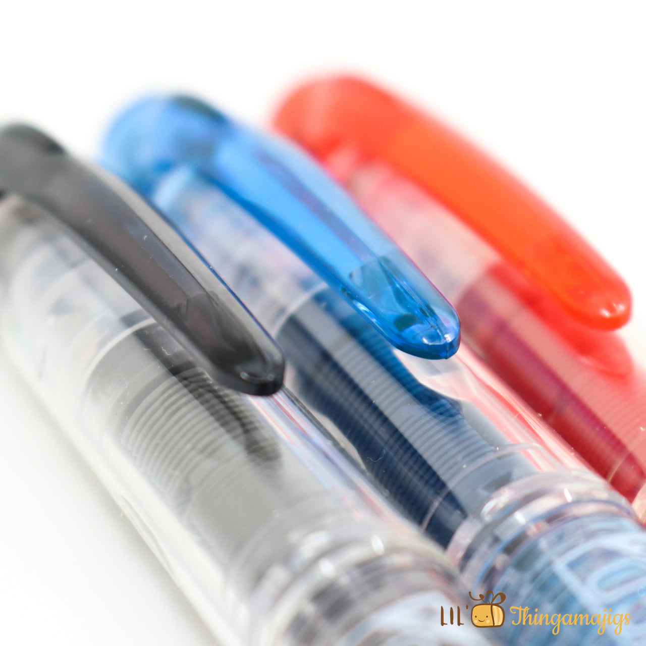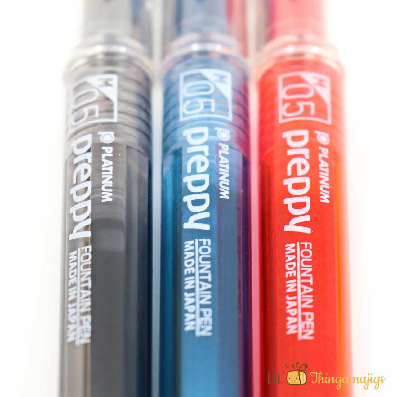 The Platinum Preppy fountain pen is a lovely Japanese pen design with a smart colored polycarbonate barrel corresponding to the color of the ink. This pen's colored body, clip, and feed match the ink inside so that you can find the correct color with only a quick look. The nib size is also printed on top of the cap to help you pick out the right size. It's the same low-price refillable fountain pen with an ink cartridge in one of 3 colors. The cap is translucent, with a colored end cap and pocket clip to match the ink color.