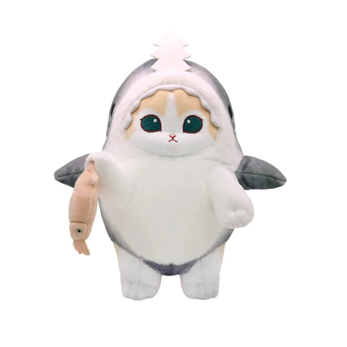 This adorable Mofusand cat is dressed in a shark costume and holding a cute squid in its paws. Perfect for Mofusand fans, this plush combines playful charm with cozy cuteness. It's a must-have addition for collectors and those who love unique and fun plushies!