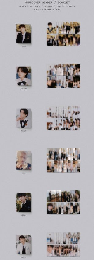 - Hardcover binder: 1 out of 13 types randomly inserted (different covers for each version) / W82 X H105 (mm) / 28 pockets