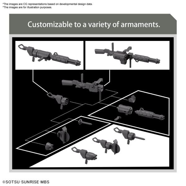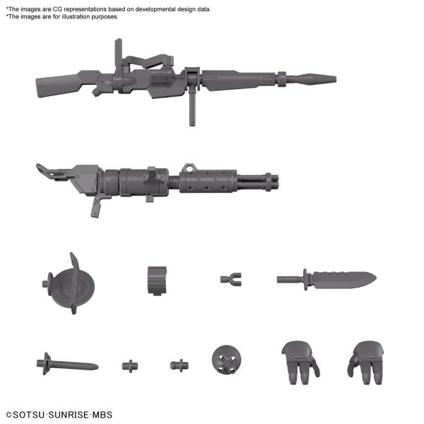 dd onto the Demi Trainer model kit with this matching 1/144 scale expansion set! Part of the High Grade Era model kit line, this set includes pieces to a beam rifle and Gatling gun while also including a combat knife, drill parts, missile launcher parts, and round saw parts.