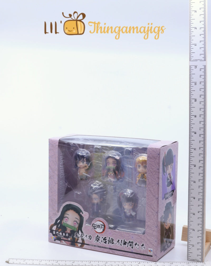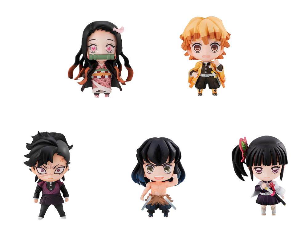 From the popular anime, Demon Slayer: Kimetsu no Yaiba, the fierce Hishiras are shrunk down to an adorable size! This set includes Nezuko Kamado, Zenitsu Agatsuma, Inosuke Hashibira (No Mask), Genya Shinazugawa, and Tsuguko Kanao Tsuyuri.