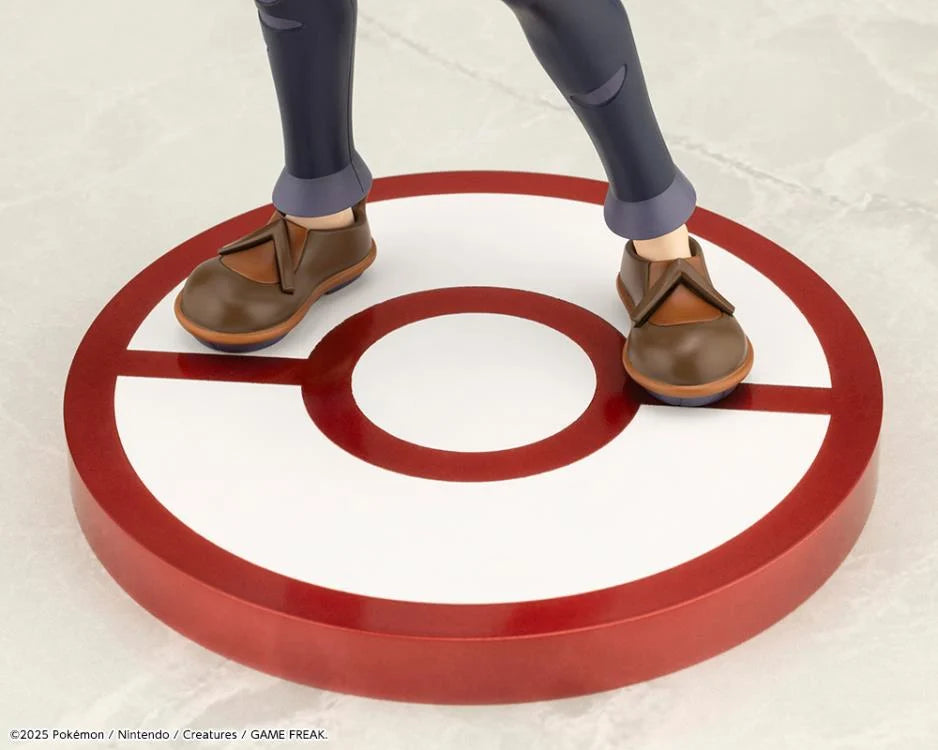 Victor is posed pointing off into the distance, representing the great adventure he and his companions are about to embark on in the Galar region. Based on an illustration by Hitoshi Ariga, the figure is packed with details, from the texture of the leather backpack to the checked pattern of his pockets and the three-dimensional expression of the distressed jeans. Everything has been captured in a way only possible with a figure.