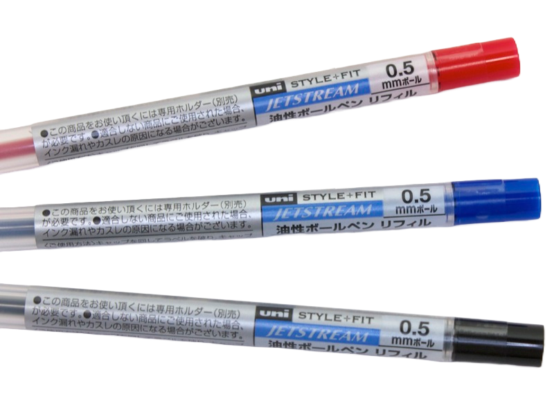 The Uni Style Fit is the latest custom multi pen series from Mitsubishi Pencil Corp. These Jetstream refills are for any custom multi barrel in the Uni Style Fit series. They can be changed as often as you like. Mix and match these oil-based ballpoint refills with the gel refills or lead to add more versatility to your pen.