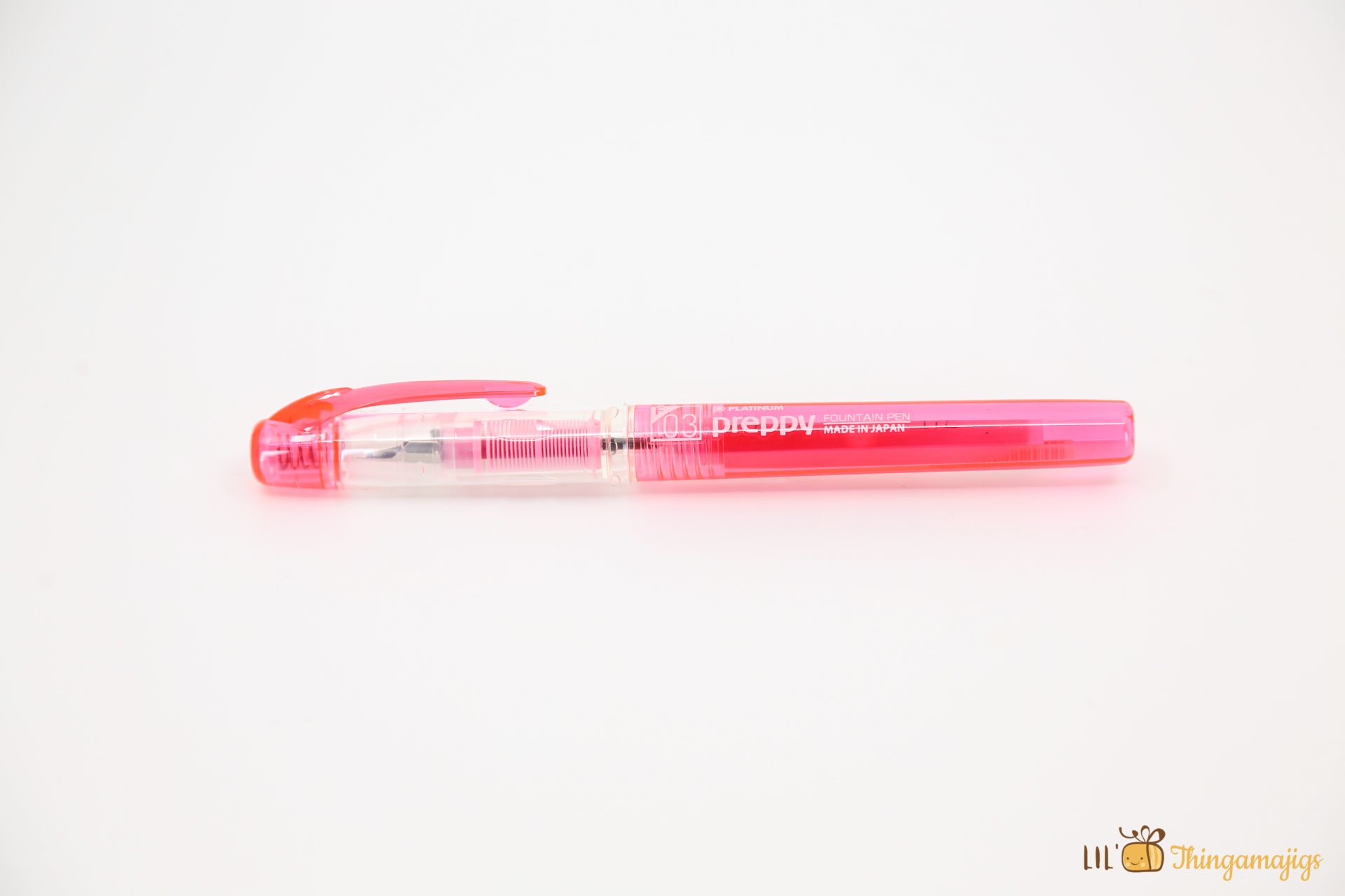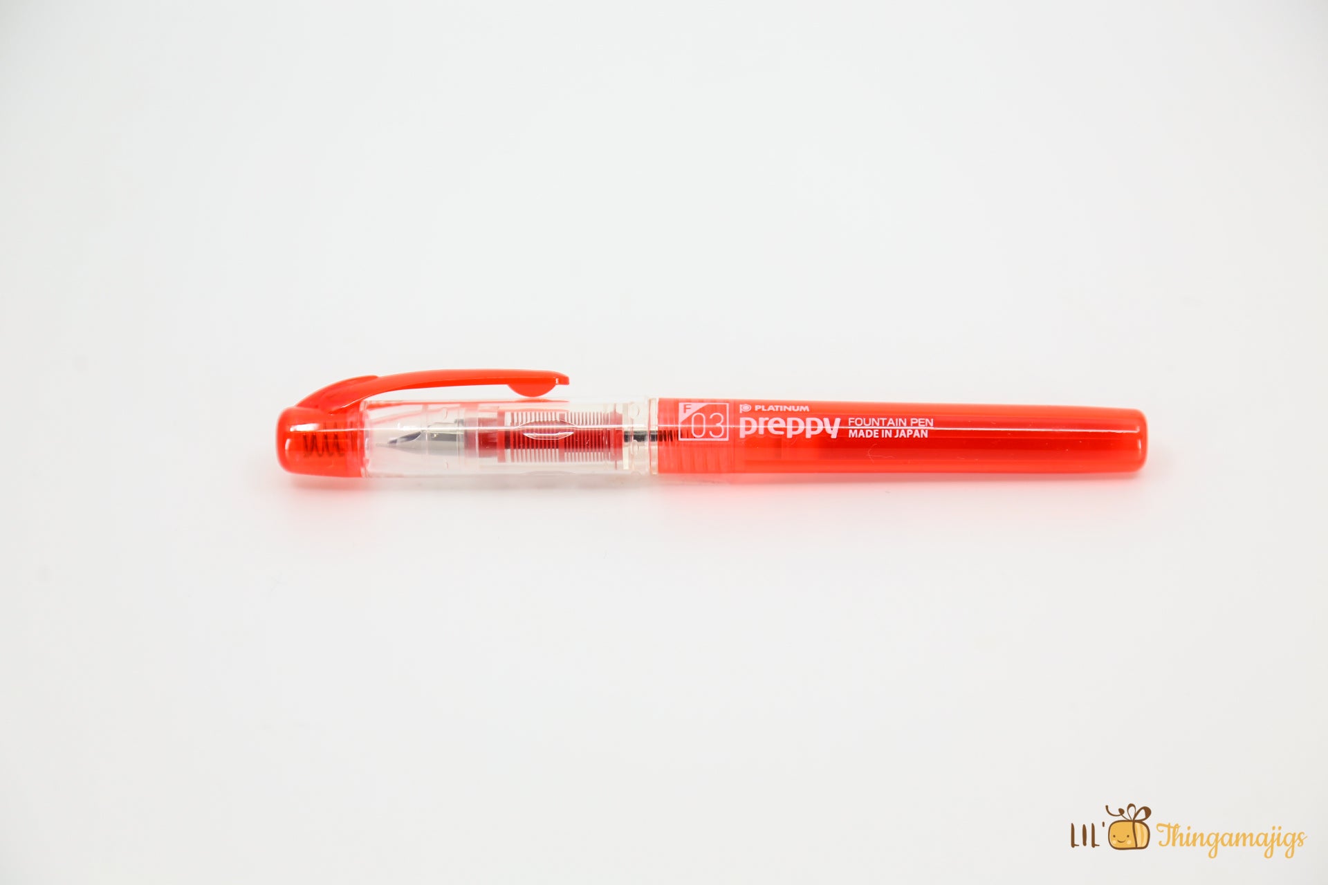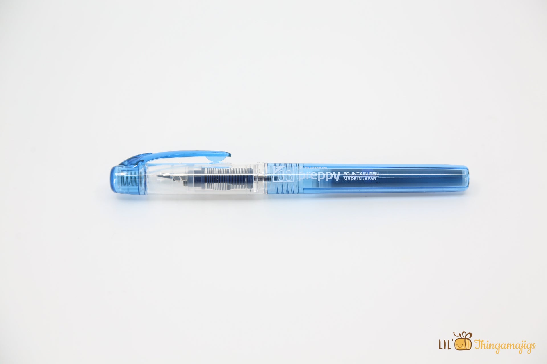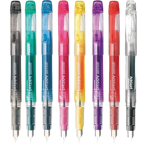 The Platinum Preppy fountain pen is a lovely Japanese pen design with a smart colored polycarbonate barrel corresponding to the color of the ink.This pen's colored body, clip, and feed match the ink inside so that you can find the correct color with only a quick look. The nib size is also printed on top of the cap to help you pick out the right size. The cap is translucent, with a colored end cap and pocket clip to match the ink color.