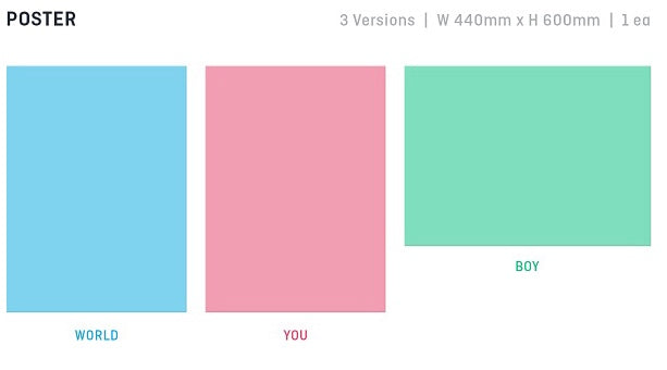- Poster: 1x each version (This is a folded poster, included in the album) / W 440 X H 600 (mm)