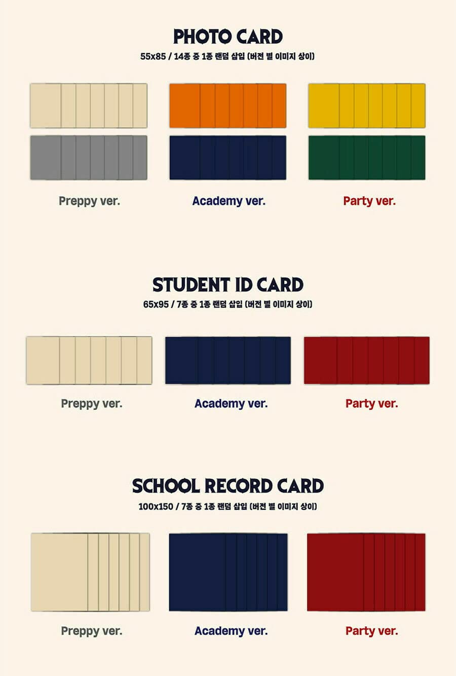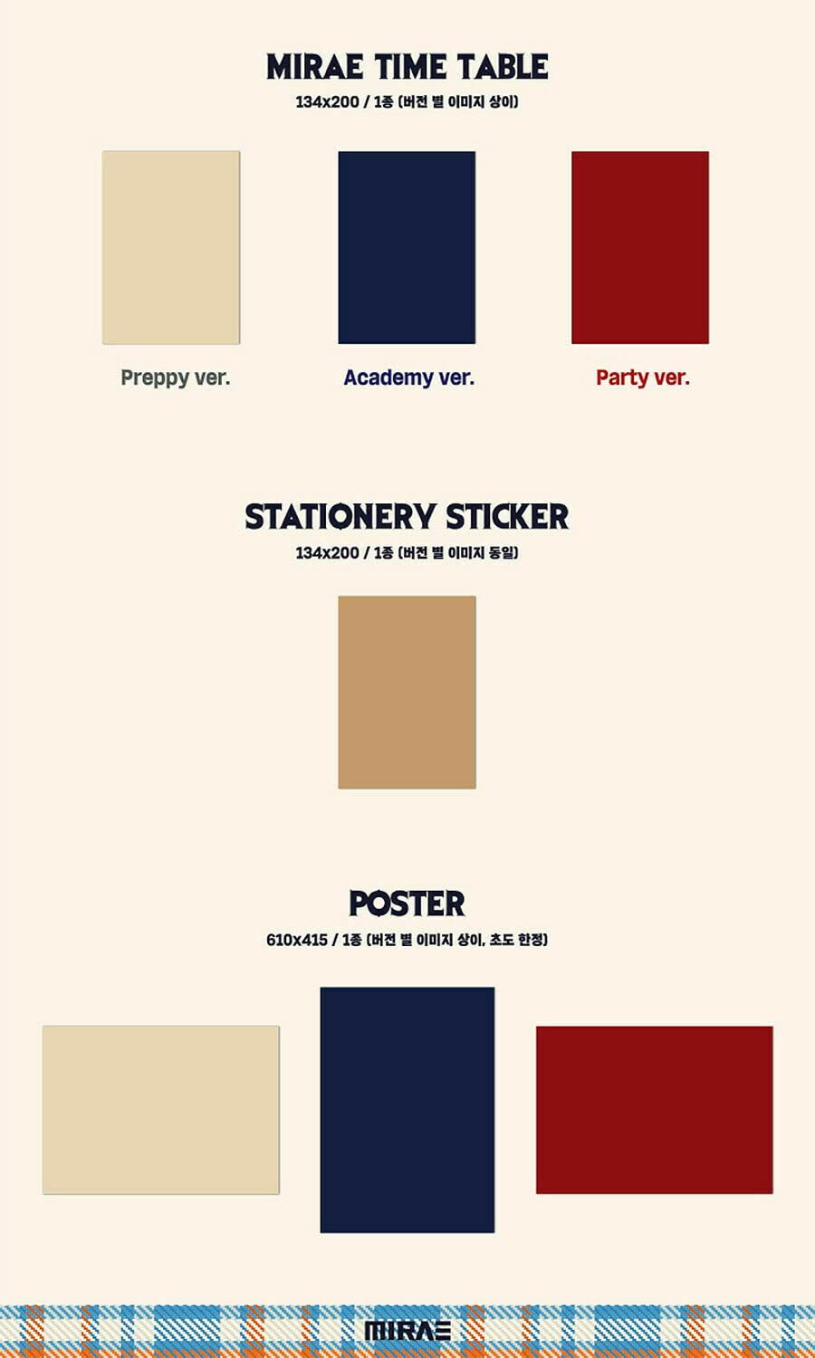 Content: CD, Photo Book(80p), Photo Card, Student ID Card, School Record Card, Mirae Time Table, Stationery Sticker