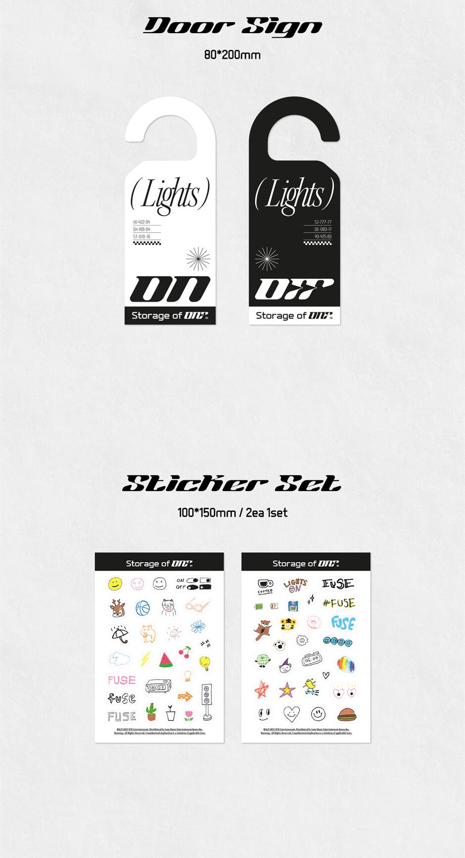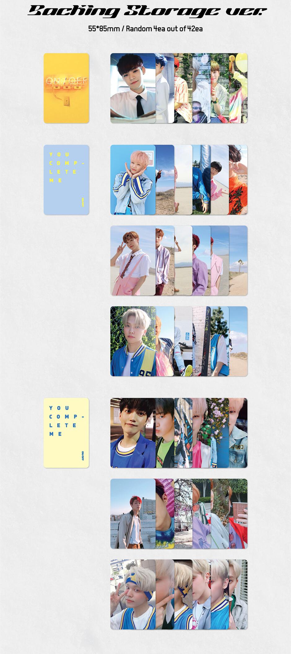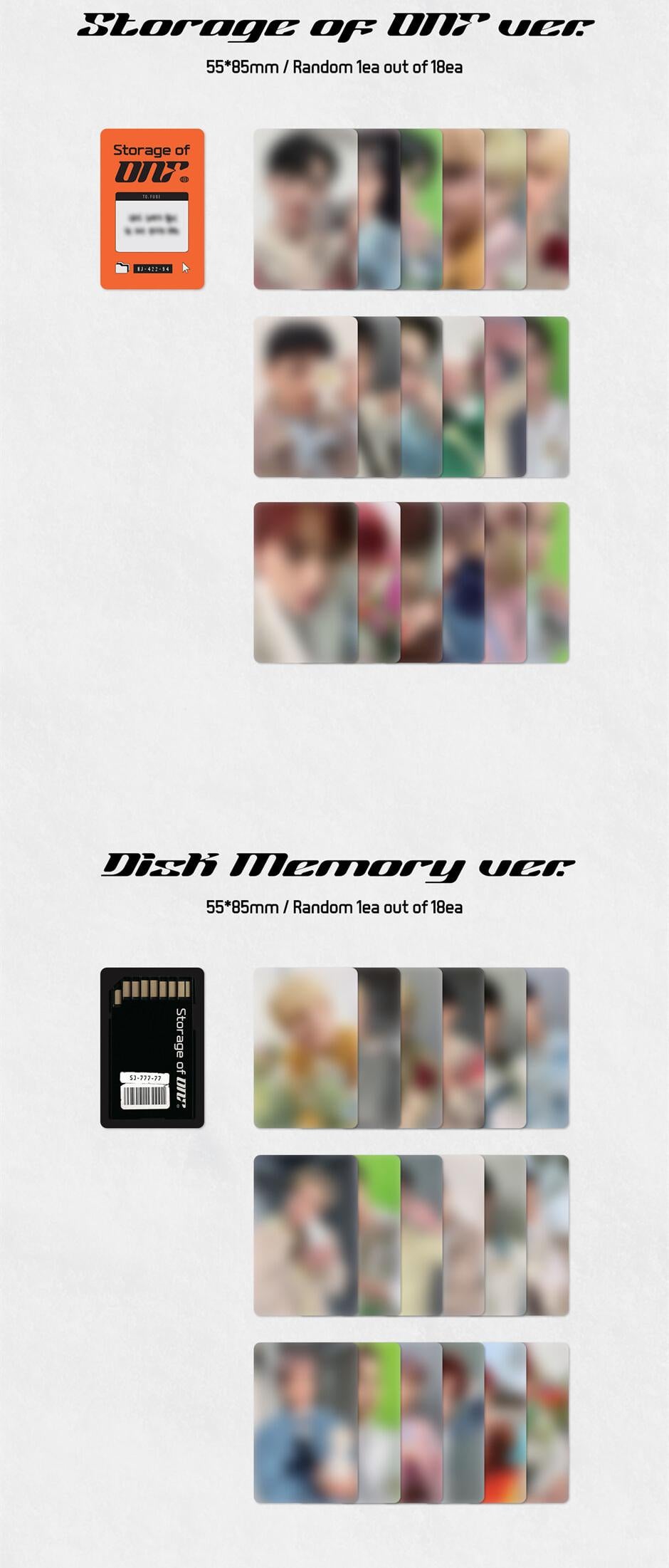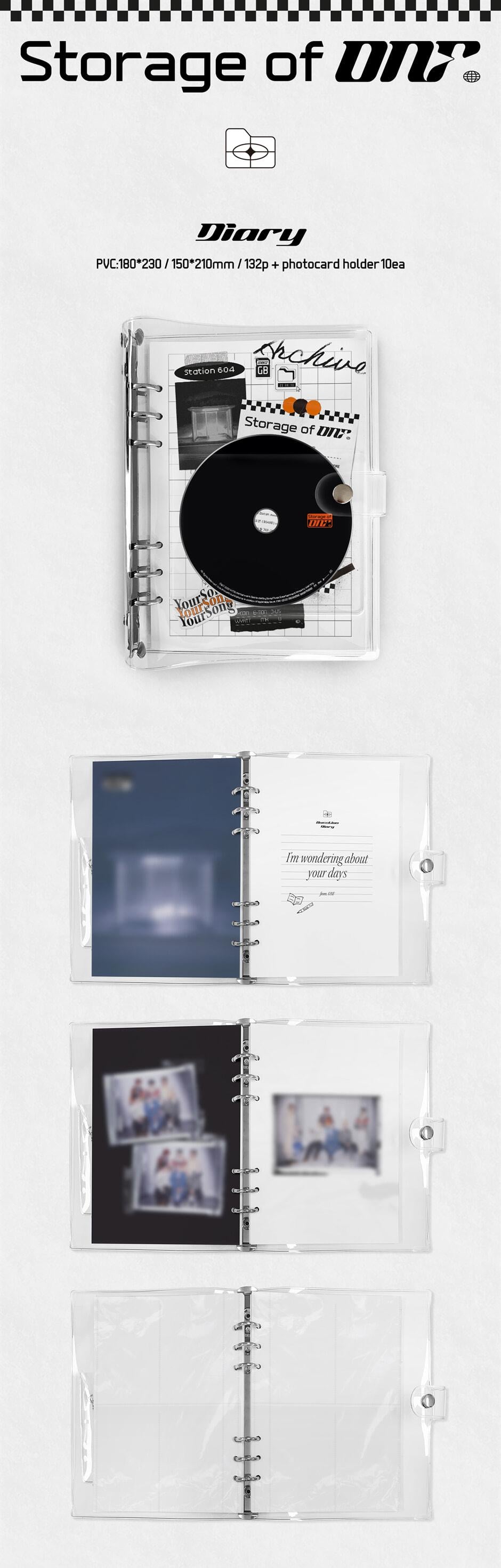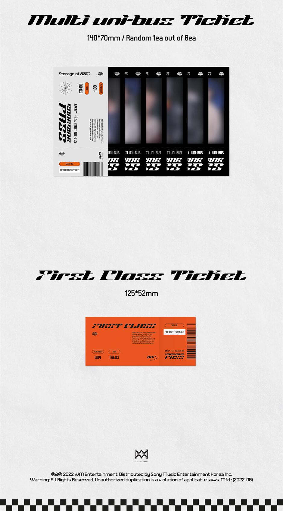 Includes: CD+Diary/Photocard Holder+Keyring+Clip+Door Sign+Sticker Set+4 Random Backing Storage Photocard out of 42+Random Storage of ONF Photocard out of 18+Random Storage of Disk Memory out of 18+Multi Uni-Random Bus Ticket out of 6+First Class Ticket