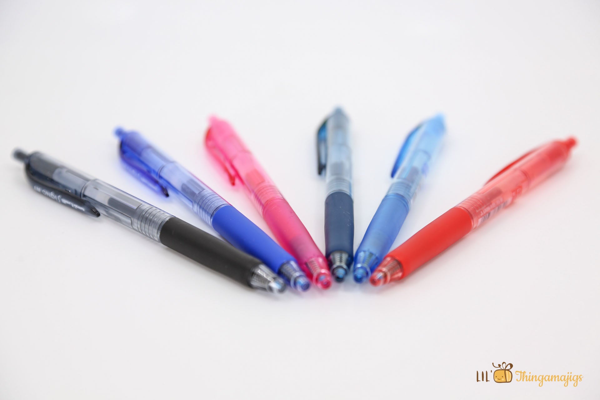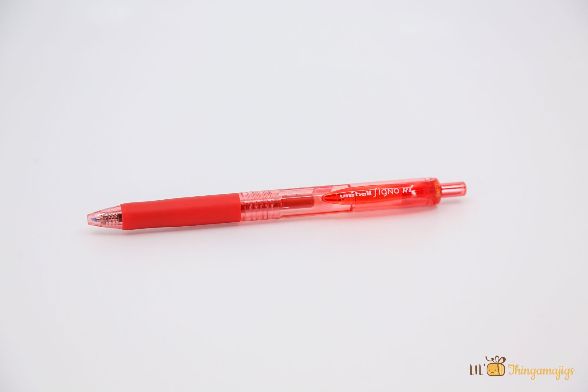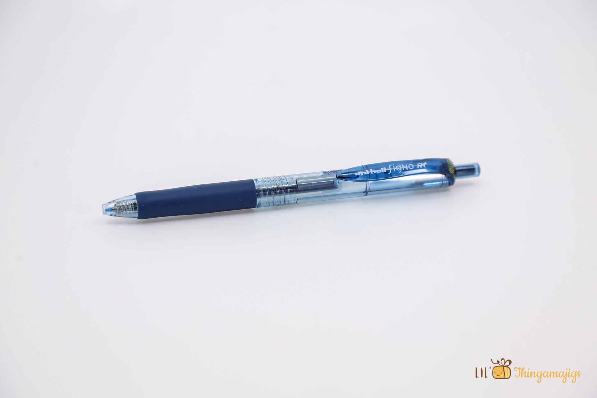 Uni-ball Signo RT Retractable Gel Pen - 0.38mm, with its water-based pigment gel ink, features a retractable 0.38 mm gel ink rollerball pen, rubber grip, and a steel point for strength. The tip is designed to reduce friction against the paper, resulting in a smooth writing experience. Very practical and affordable!