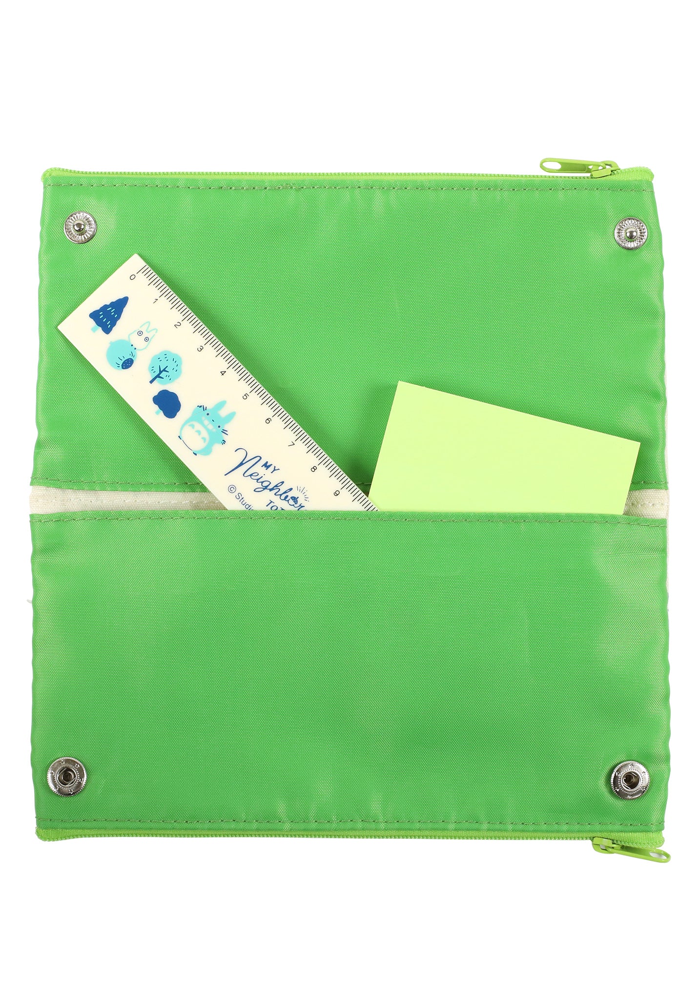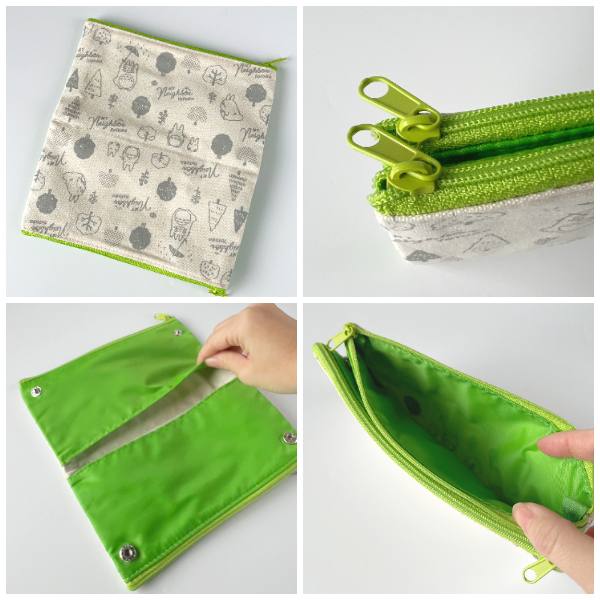 The unique foldable design allows it to transform from a compact pencil case into a spacious organizer with dual compartments, secured by snap buttons.With a vibrant green interior, this pen case is as stylish as it is practical.