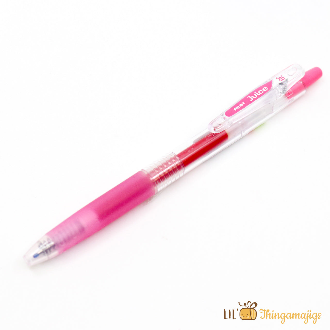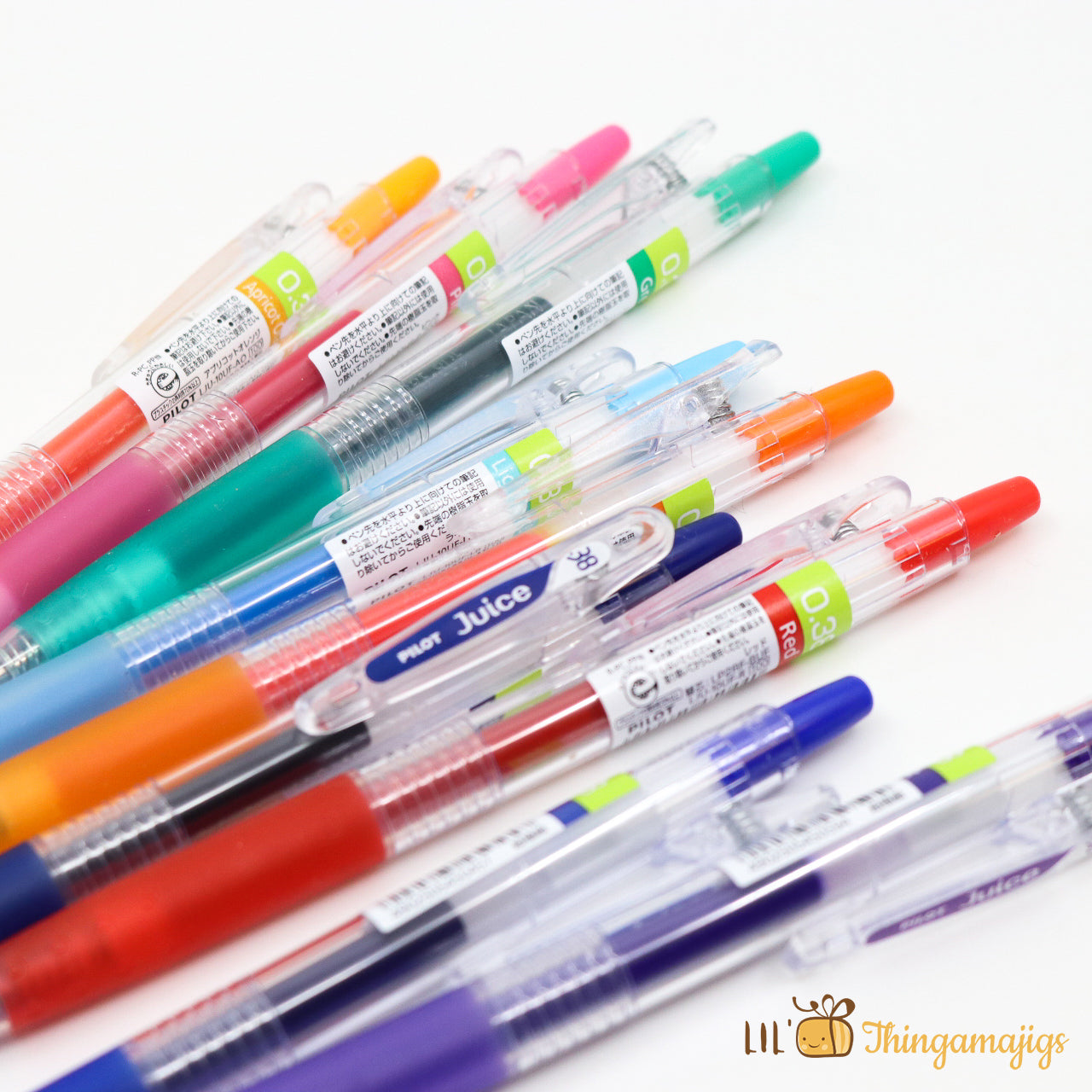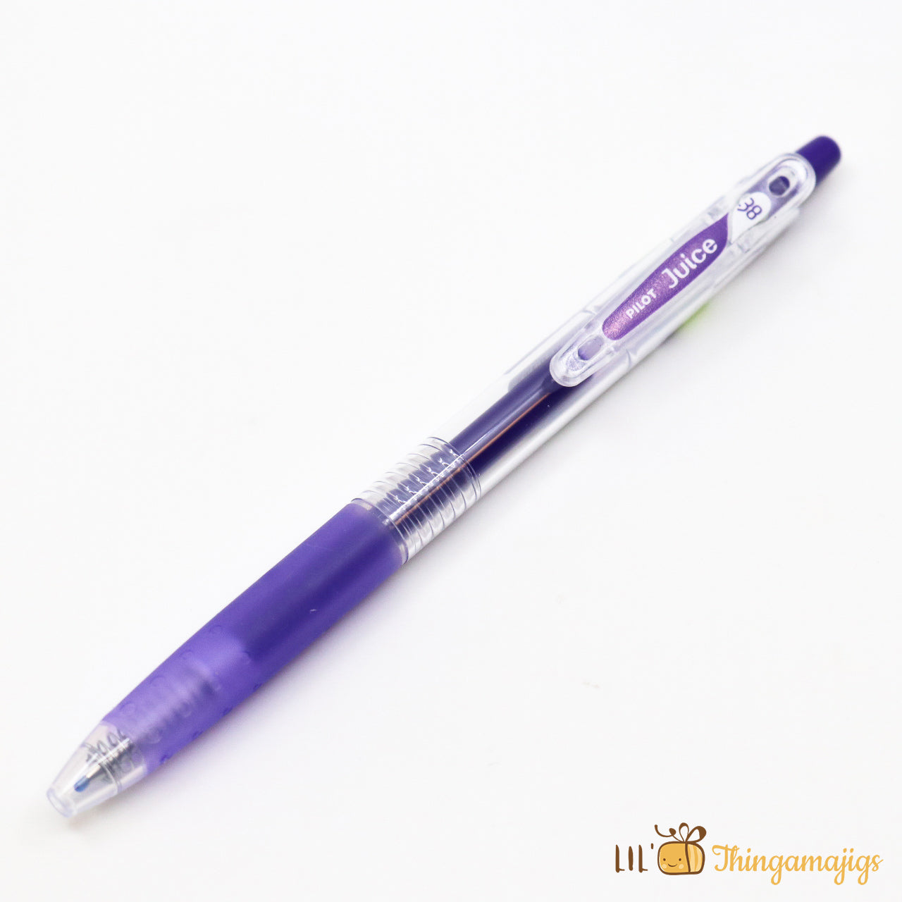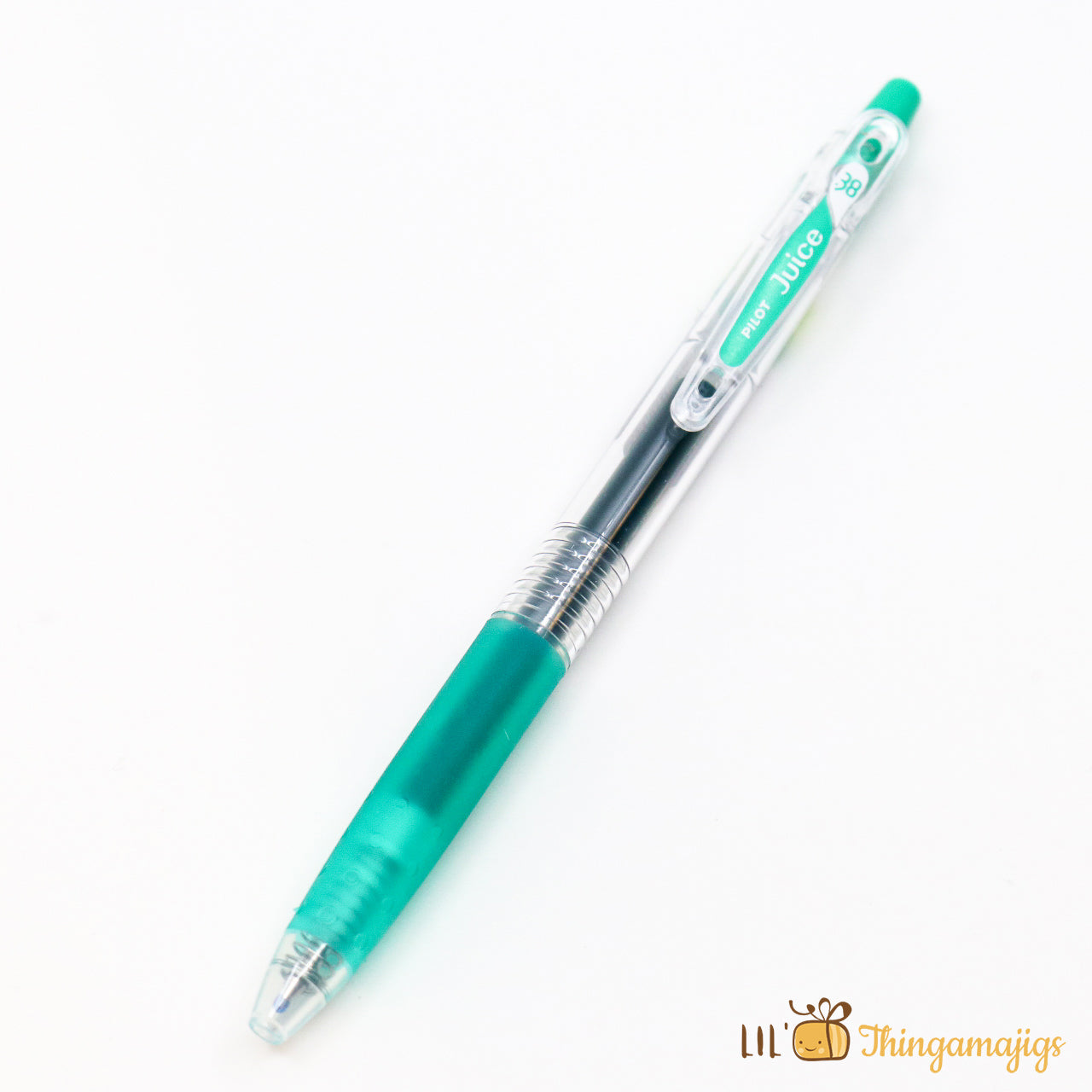 Pilot Juice Gel pen - 0.38mmis a collection of colorful pens, all containing pigment-based water-resistant ink. Attach your pen to your notebook using the sturdy spring-loaded clip and never worry about dropping it. You can string a chain through the hole in the clip to hang it on your bag.