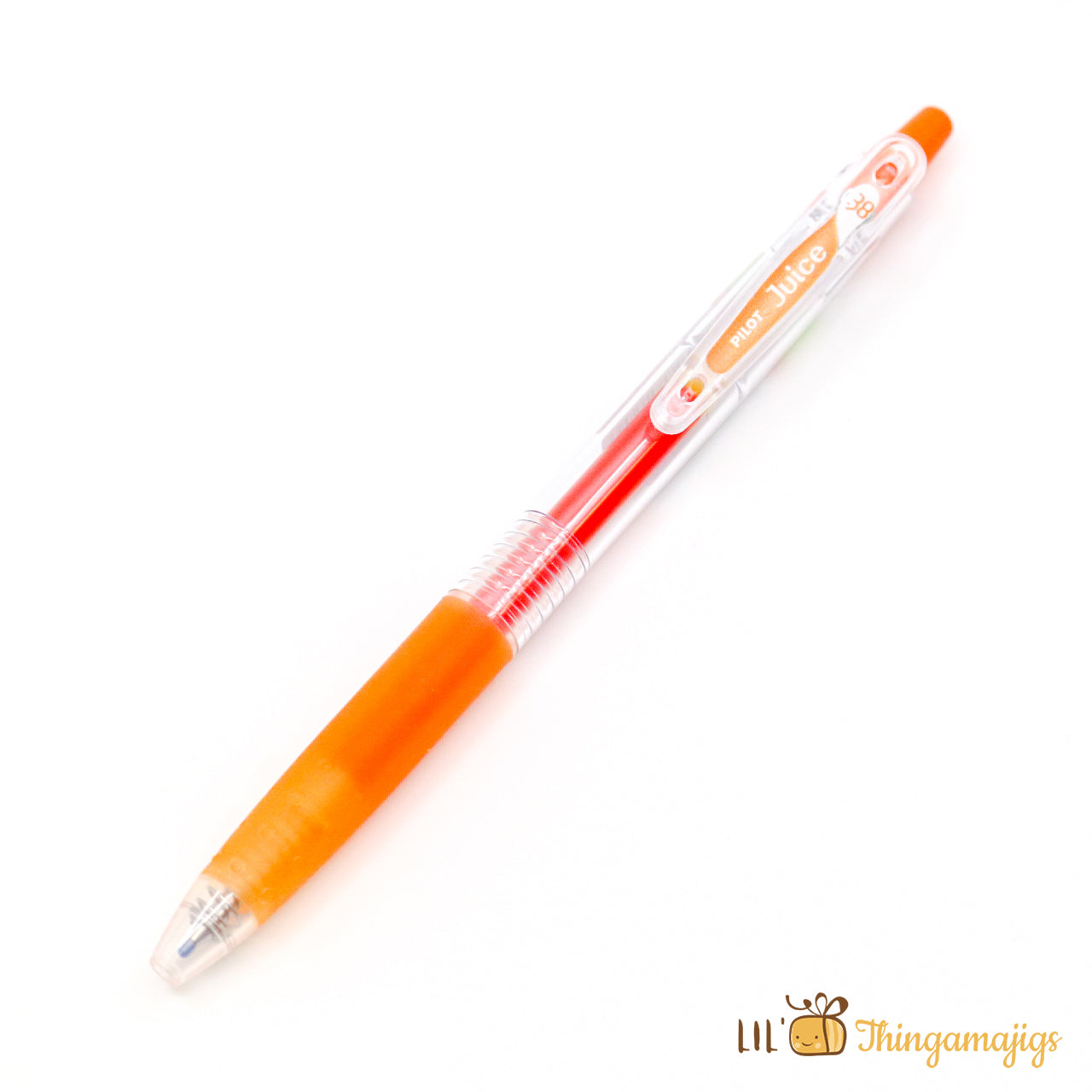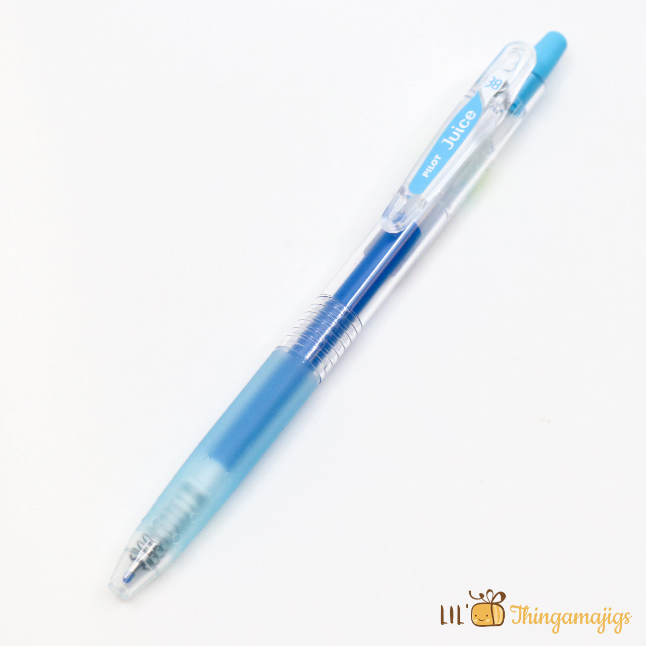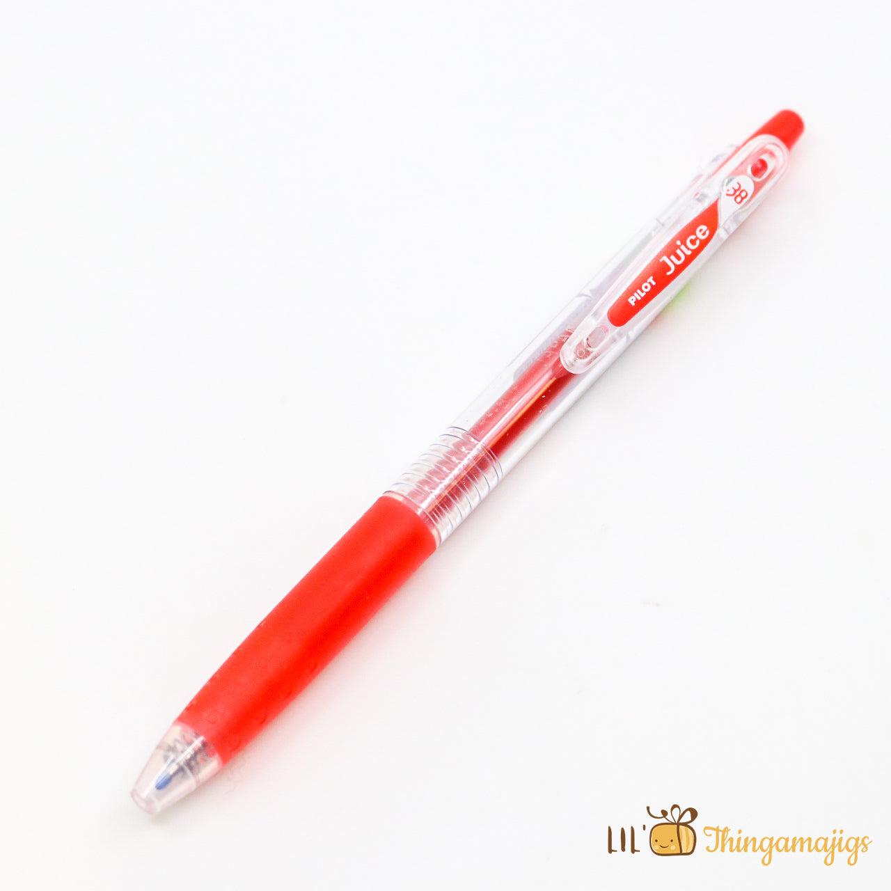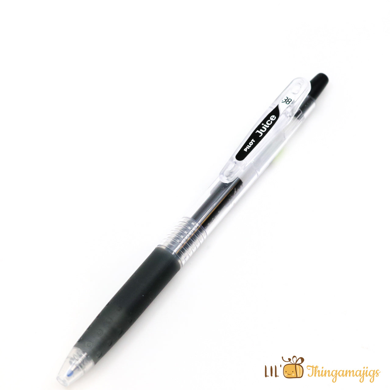 Pilot Juice Gel pen - 0.38mmis a collection of colorful pens, all containing pigment-based water-resistant ink. Attach your pen to your notebook using the sturdy spring-loaded clip and never worry about dropping it. You can string a chain through the hole in the clip to hang it on your bag.