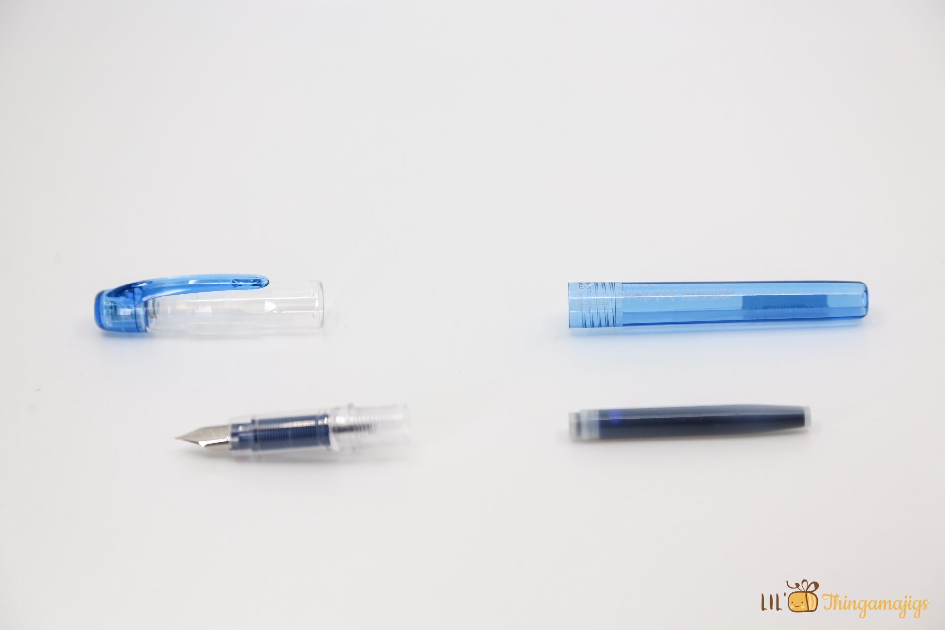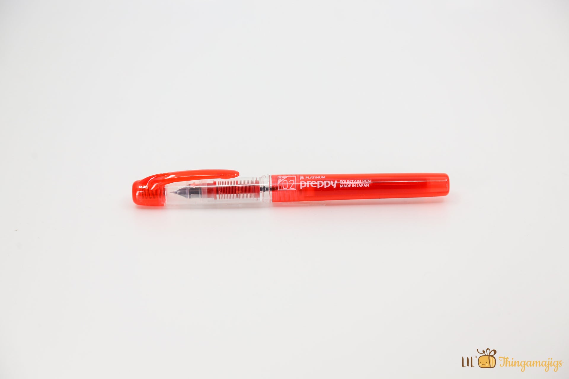 The Platinum Preppy fountain pen is a lovely Japanese pen design with a smart colored polycarbonate barrel corresponding to the color of the ink. This pen's colored body, clip, and feed match the ink inside so that you can find the correct color with only a quick look. The nib size is also printed on top of the cap to help you pick out the right size. It's the same low-price refillable fountain pen with an ink cartridge in one of 3 colors. The cap is translucent, with a colored end cap and pocket clip to match the ink color.