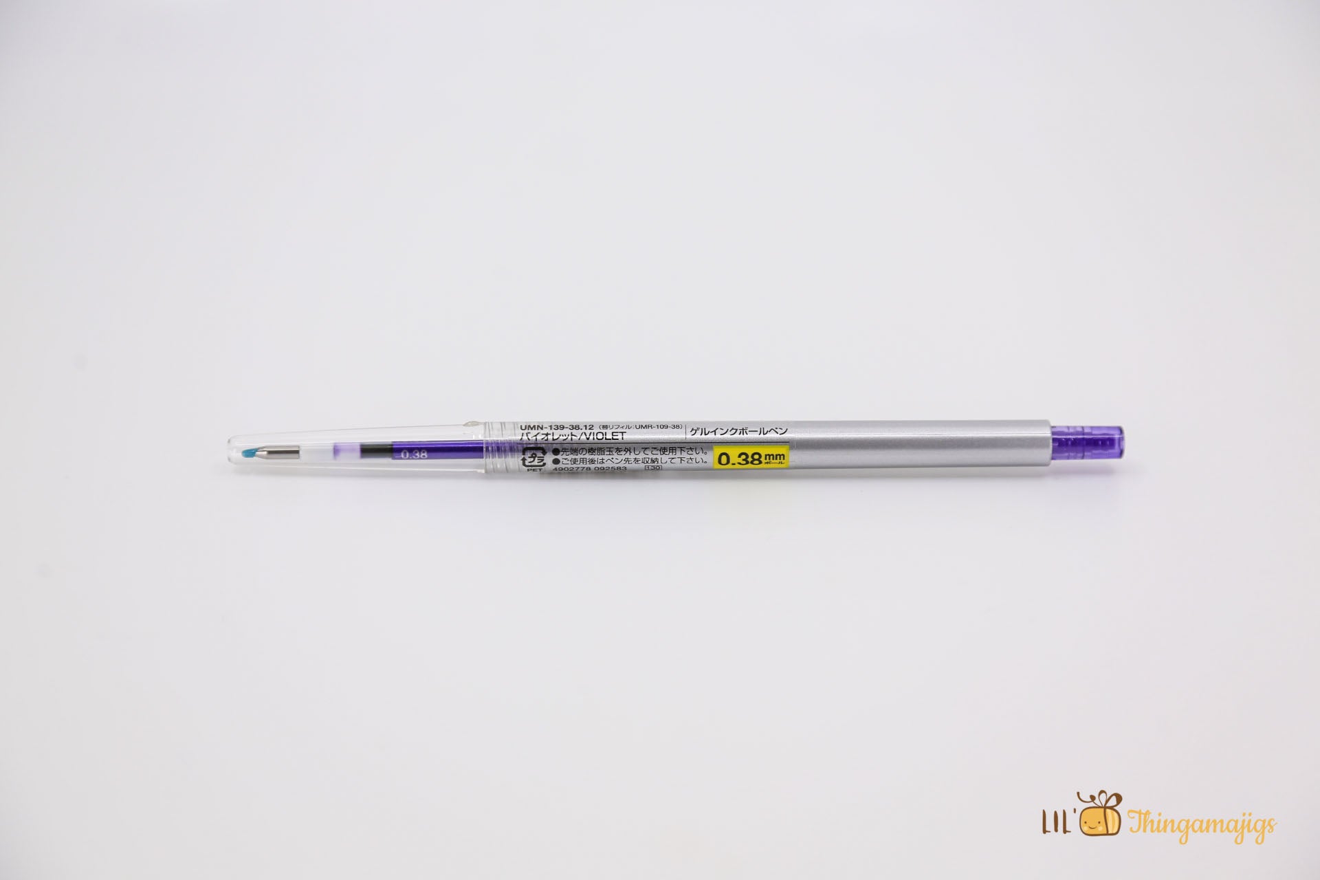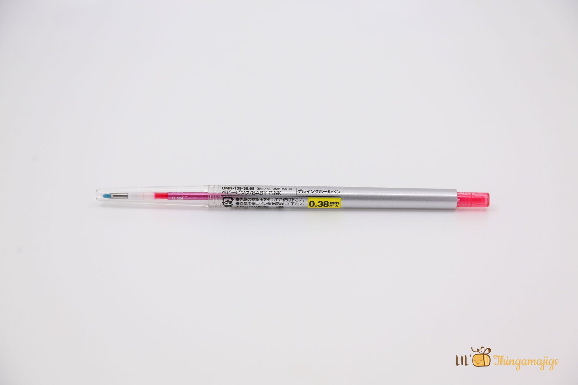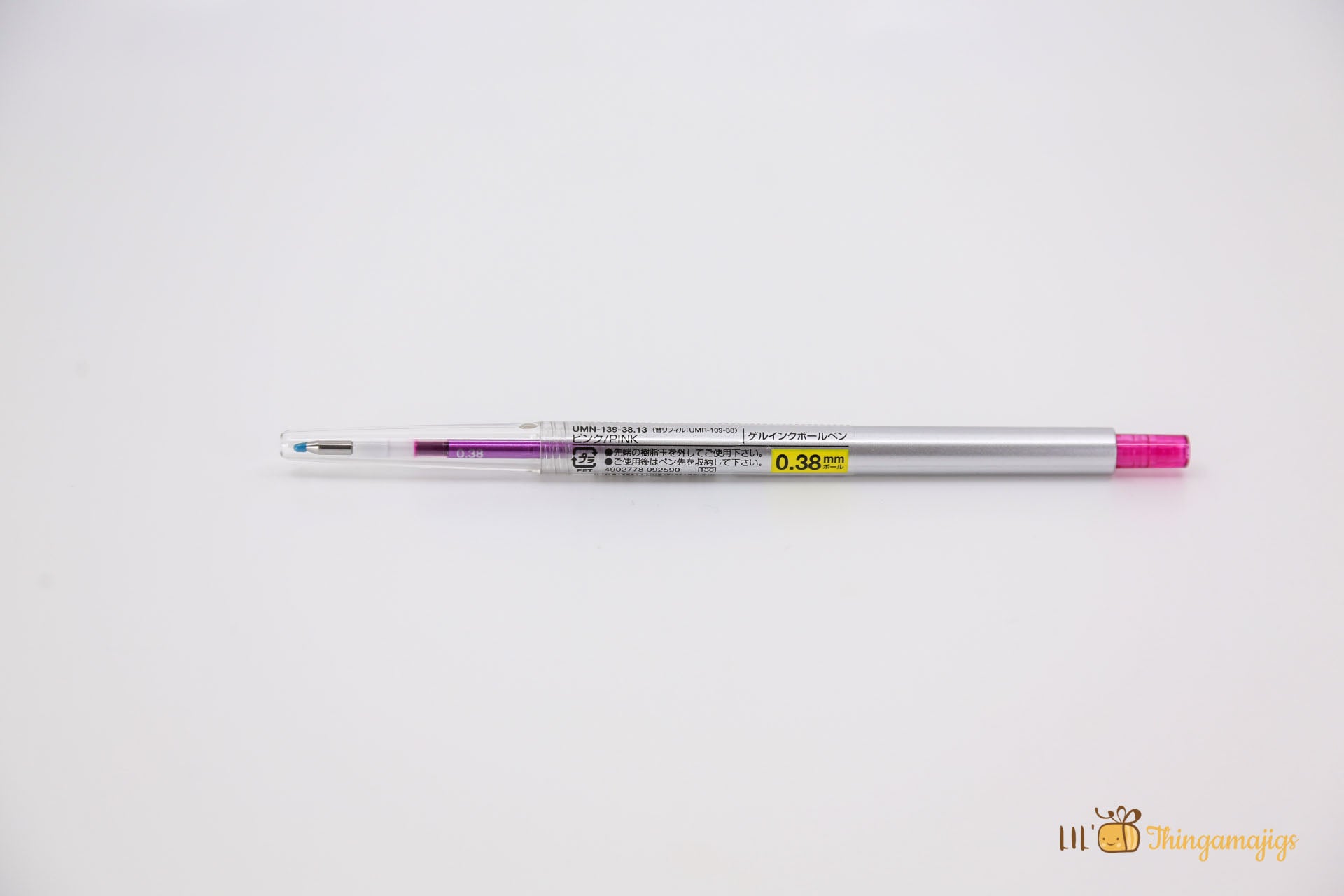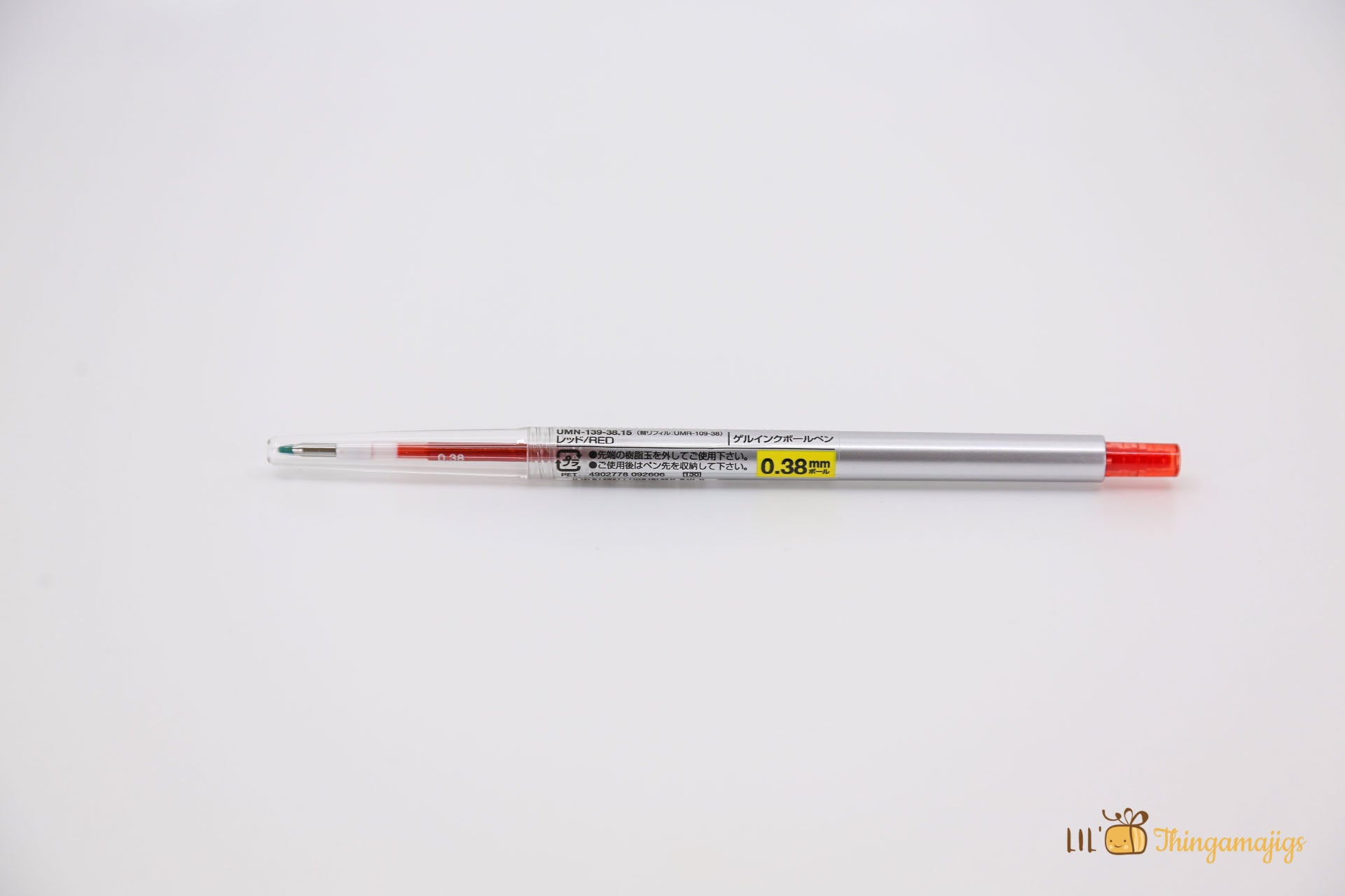 Uni Style Fit Standard Retractable Gel Pen - 0.38mm comes in a variety of colors. The body color matches the ink refill, but it can take any refill replacement, including the gel, ballpoint, and pencil refills.
