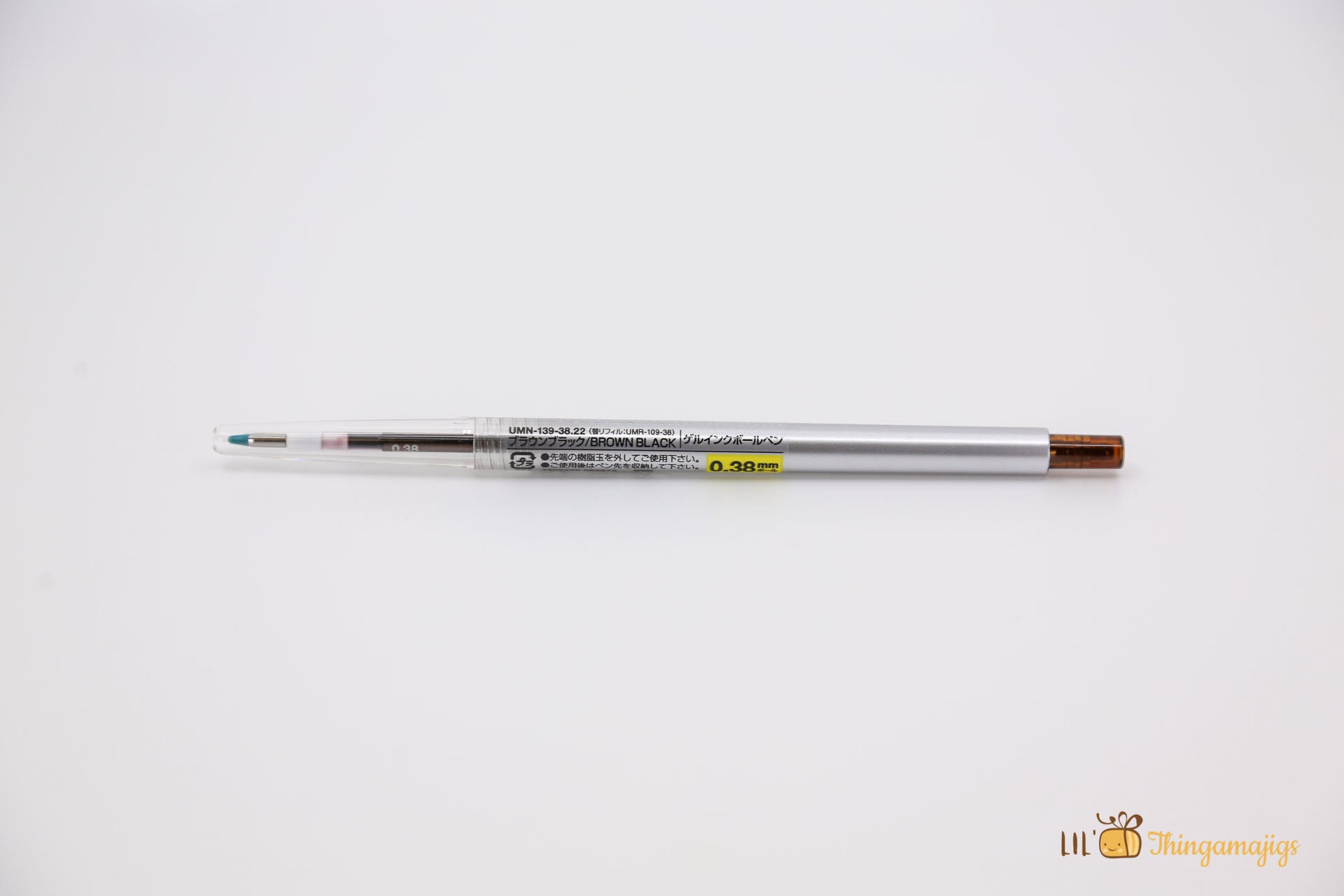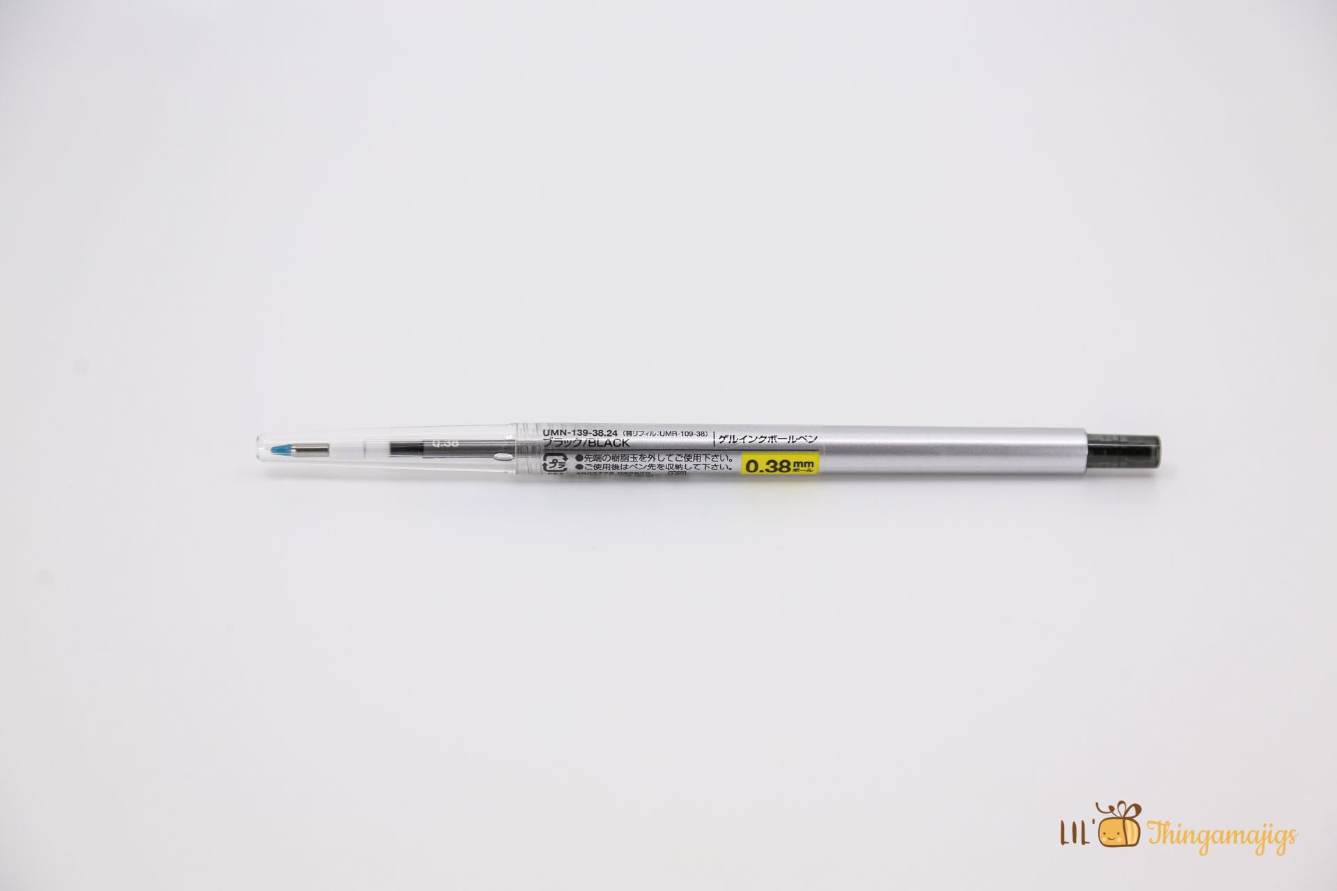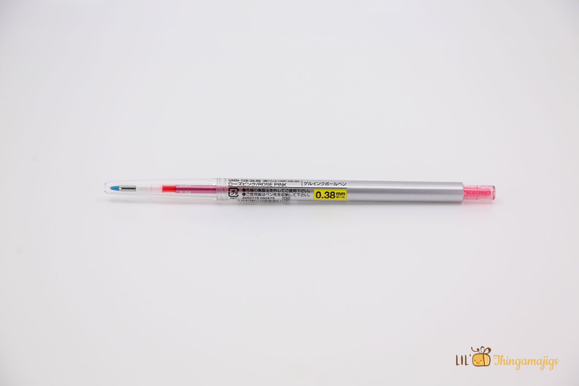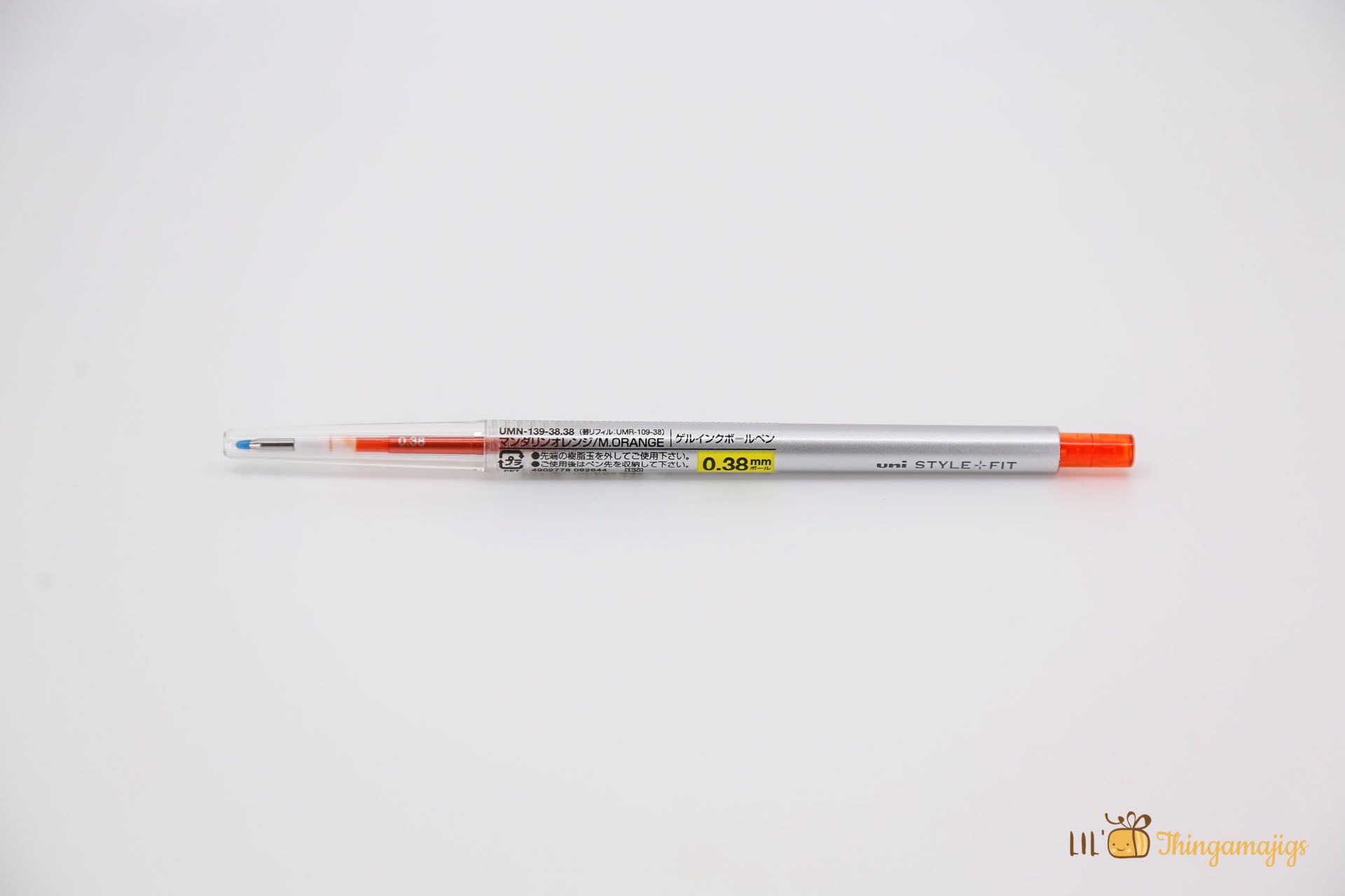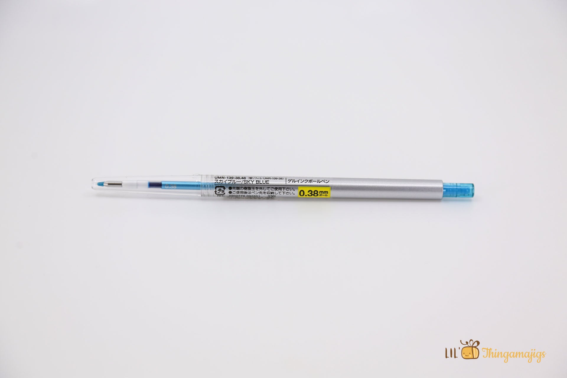 Uni Style Fit Standard Retractable Gel Pen - 0.38mm comes in a variety of colors. The body color matches the ink refill, but it can take any refill replacement, including the gel, ballpoint, and pencil refills.