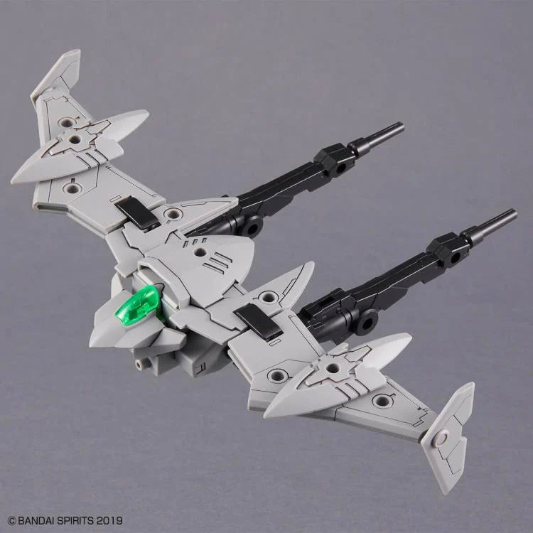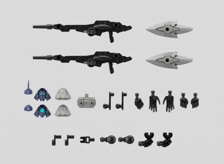 Two head parts can be interchanged depending on the desired appearance. The rifle can be attached to a backpack or other 3mm joints with the included joint parts. The backpack and chest parts can be separated and used as a flying unit. Two types of joints for backpacks are included, making it possible to connect various other items.