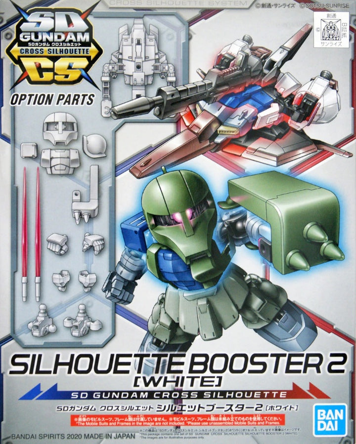 The second volume of the Cross Silhouette Series extension parts are now available with the SDGCS Silhouette Booster 2 White! This set gives you parts that can be use with the seperately sold Zeta SDCS to recreate the Waverider form. It also comes with new groin and thigh parts to allow for different proportions and movement. The set also comes with parts that when used with a SDCS Zaku II allow you to make a Zaku I. The set finally comes with option hands and beam sabers. Included in box: Swinging groin joints x 2, Angular thigh parts x 2, hands x 2, Zaku I parts x 1, Zeta Gundam Waverider parts x 1, Beam Sabers x 2 and Manual x 1