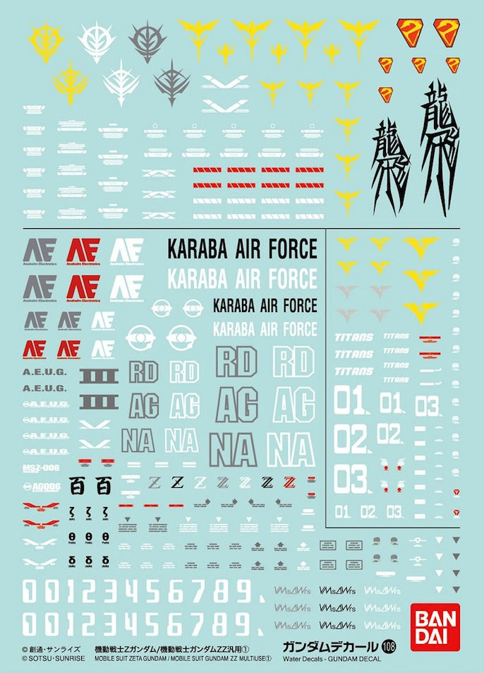 Bandai Gundam Decal No.108 for 1/100 & 1/144 Z & ZZ Gundam Series 1 (196075)