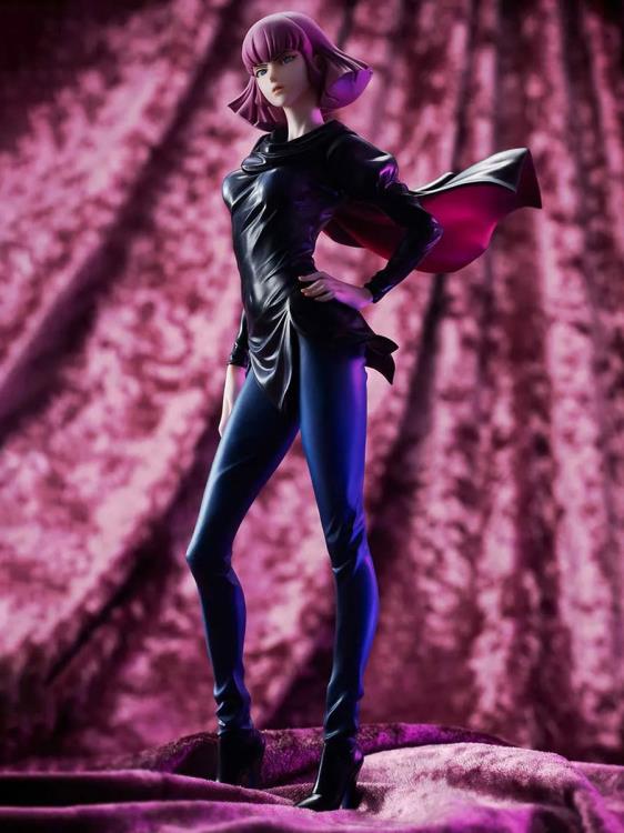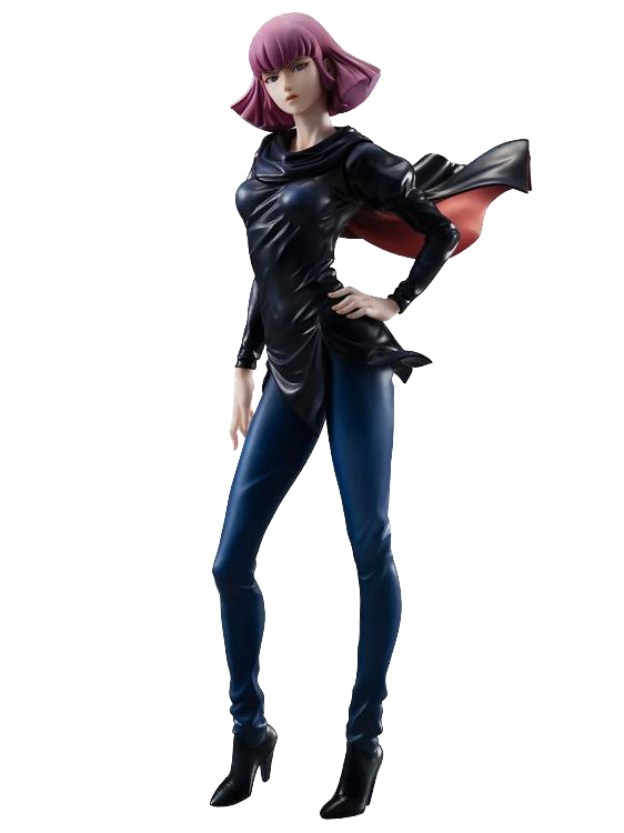 This Gundam Girls Generation figure features Haman Karn from the anime series Mobile Suit Zeta Gundam. This 1/8 scale figure depicts the empress wearing her trademark black costume with a fluttering cloak and characteristic hairstyle.