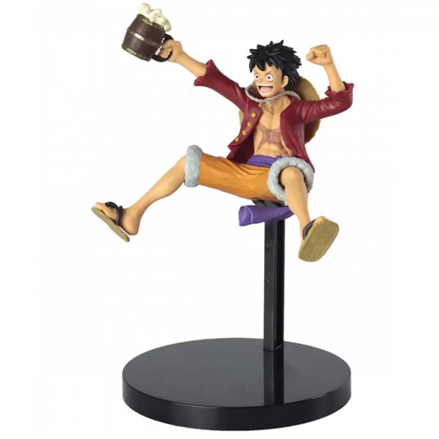 From the One Piece anime comes a figure of Monkey D. Luffy jumping in the air with a big mug in his hands. He stands over 3 inches tall and highly detailed.