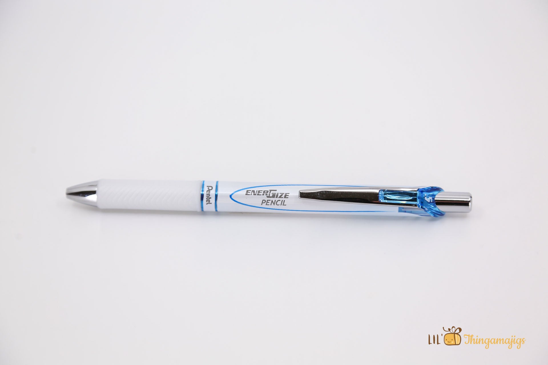 Pentel Energize Mechanical Pencil - 0.5mm features a stylish barrel with stainless-steel accents for a professional appearance. The rubber grip provides comfortable writing experience. It also features a soft, subtly-ridged rubber grip, a metal pocket clip, and a refillable eraser under the cap. Perfect for everyday writing needs!