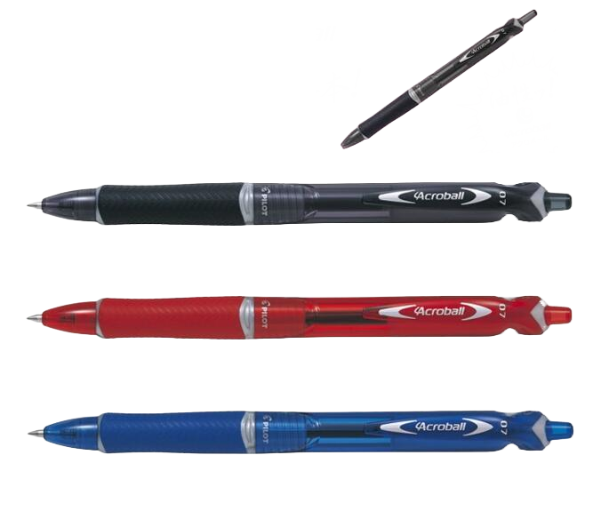 Pilot Acroball Pen - 0.5mm combines the vibrancy of gel ink and the quick-drying and water-resistant properties of conventional ballpoint ink. Therefore, the result is vivid, long-lasting lines when you write and draw. The ball at the pen tip rotates smoothly, creating a gliding, no-skip writing experience. The rubber grip also gives you writing comfort, featuring a tire tread-like texture to give you a firm hold.