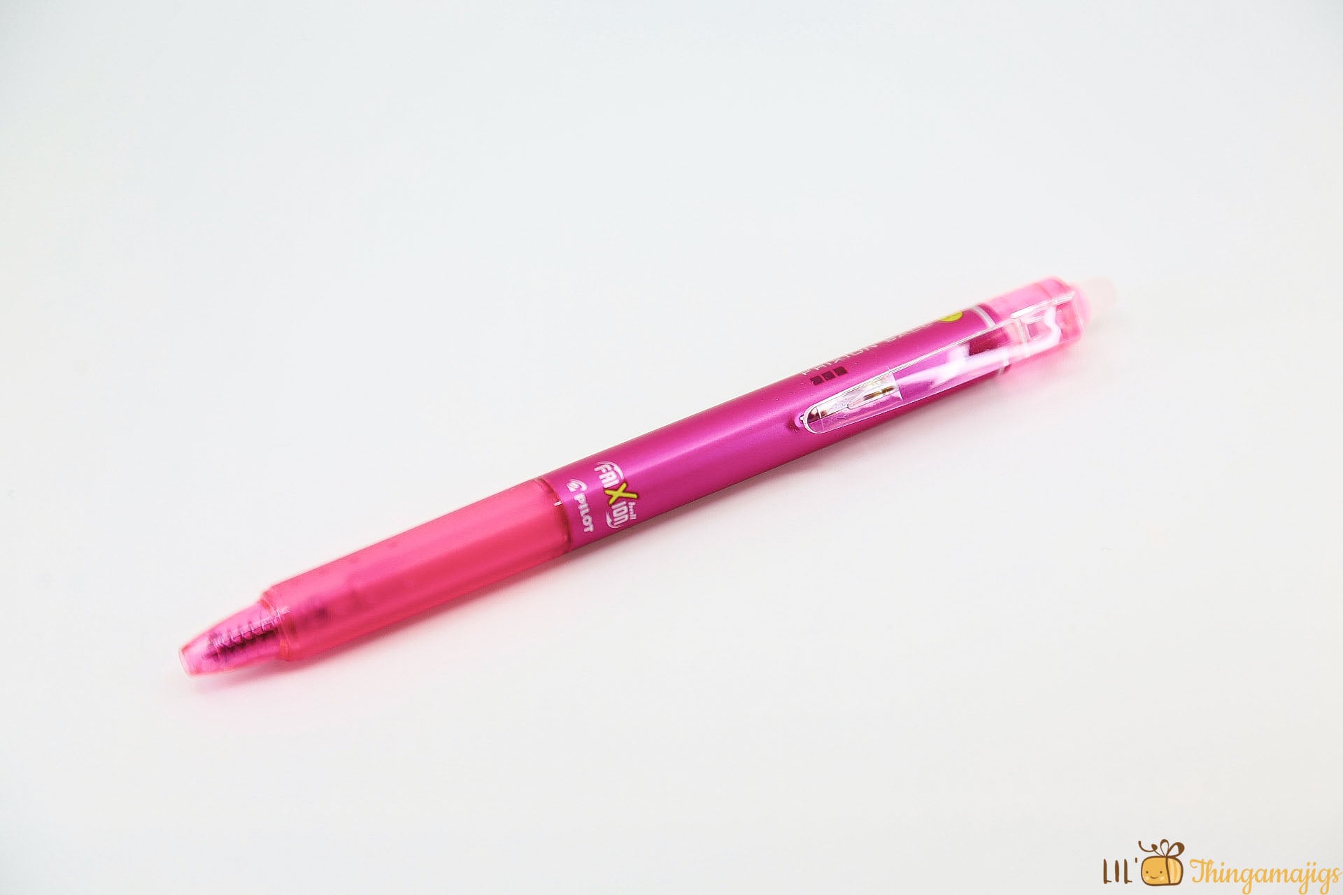 The Pilot Frixion Gelpen features the widely popular thermo-sensitive ink that can be erased by friction, and even better because it now comes in a sleek, retractable body. This special magic thermosensitive ink turns invisible when erased with the friction "eraser" built into the top of the pen. Erased FriXion ink reappears if exposed to cold temperatures below 14° F (-10° C), in a freezer.