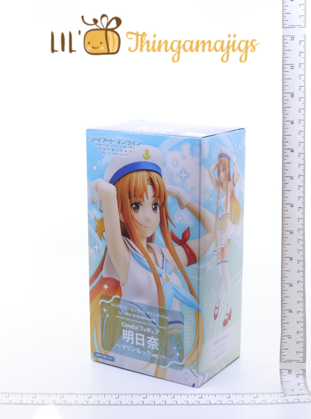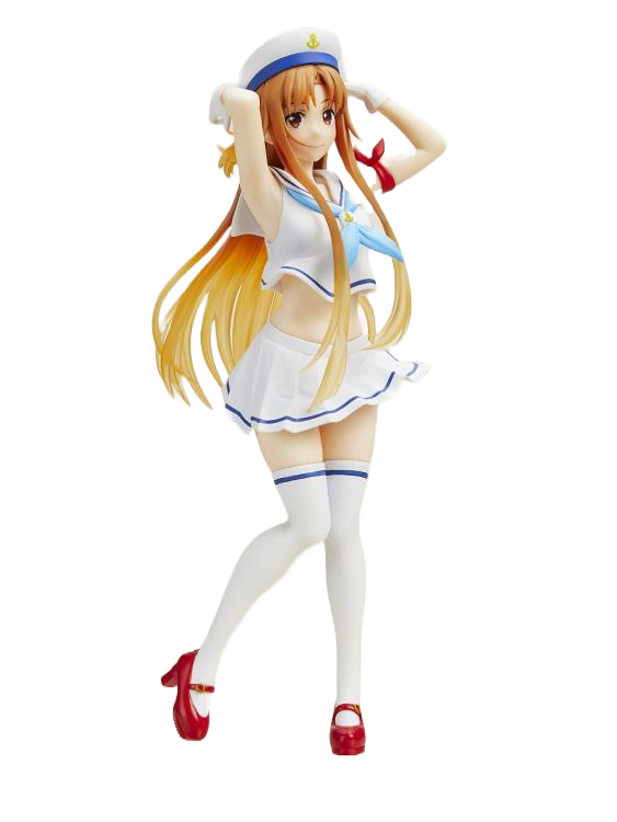 Asuna joins the Coreful Figure line sporting a marine inspired outfit! She stretches up her arms to adjust her beret ever so sweetly. Nearly 8 inches tall and standing on a base, she is an adorable addition to any Sword Art Online collection.
