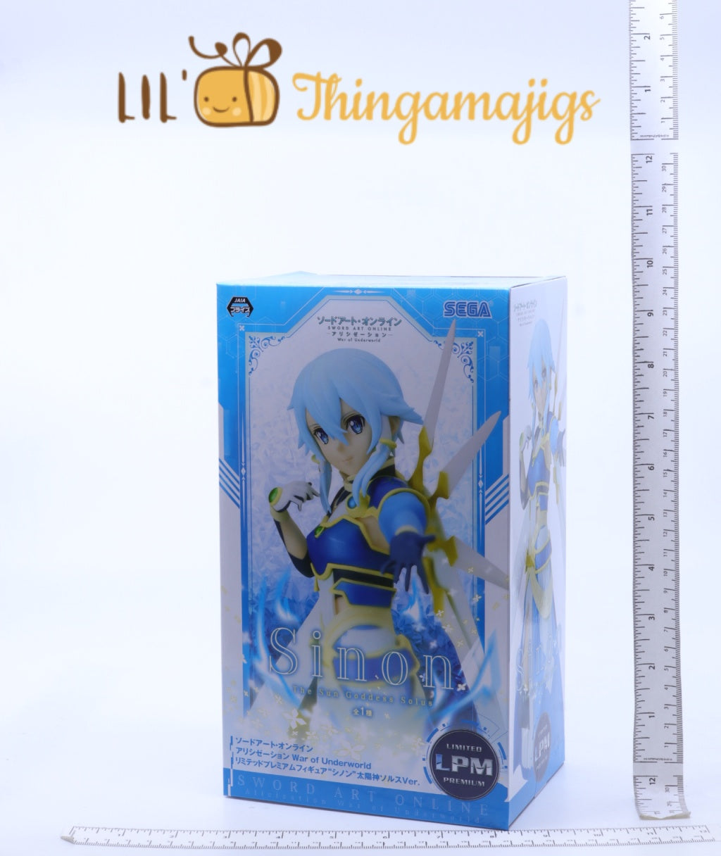 Based on her appearance in Sword Art Online: Alicization - War of Underworld, Sinon joins the LPM Figure line from Sega! She stands around 9 inches tall in her Sun Goddess Solus version, floating upon her figure base.