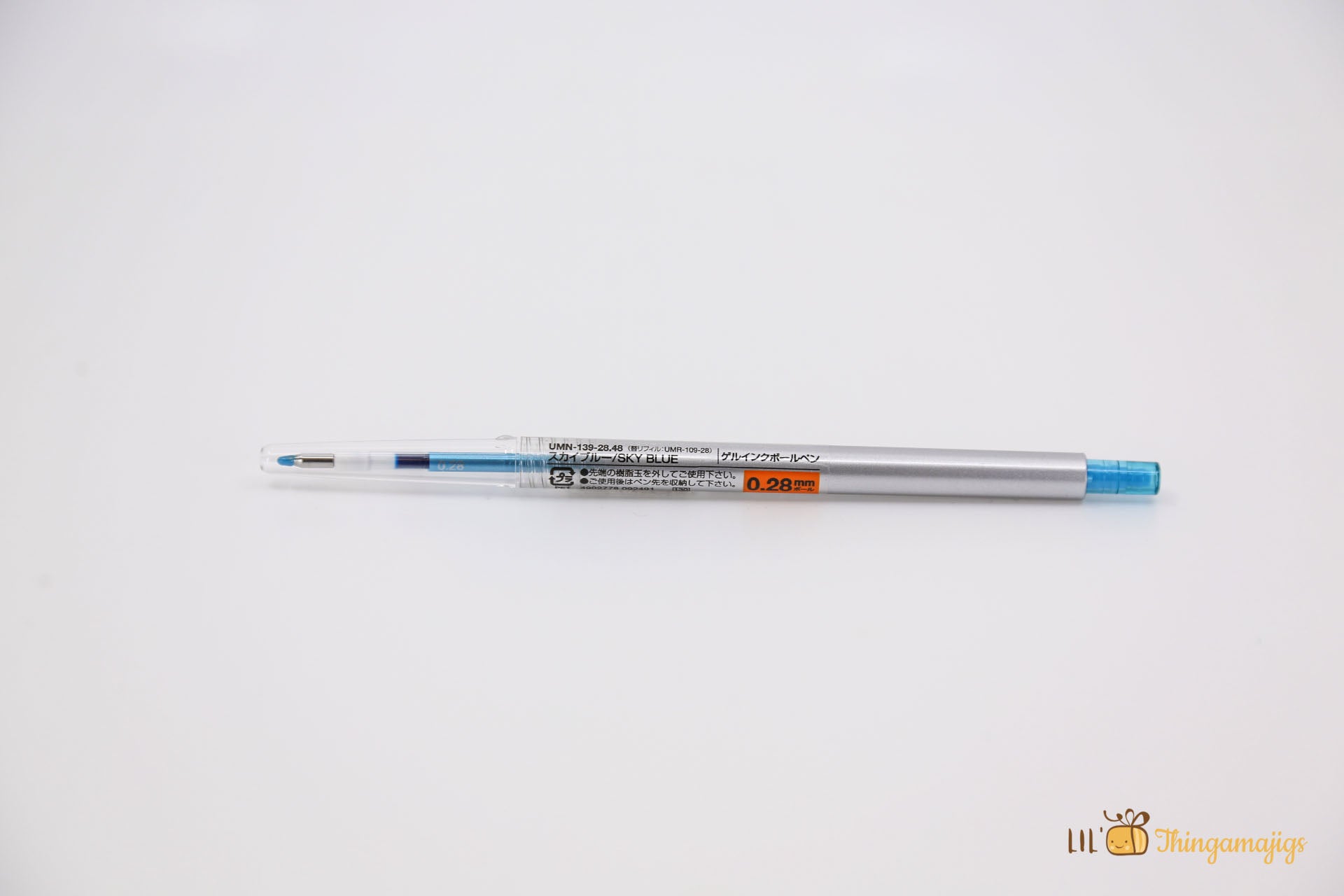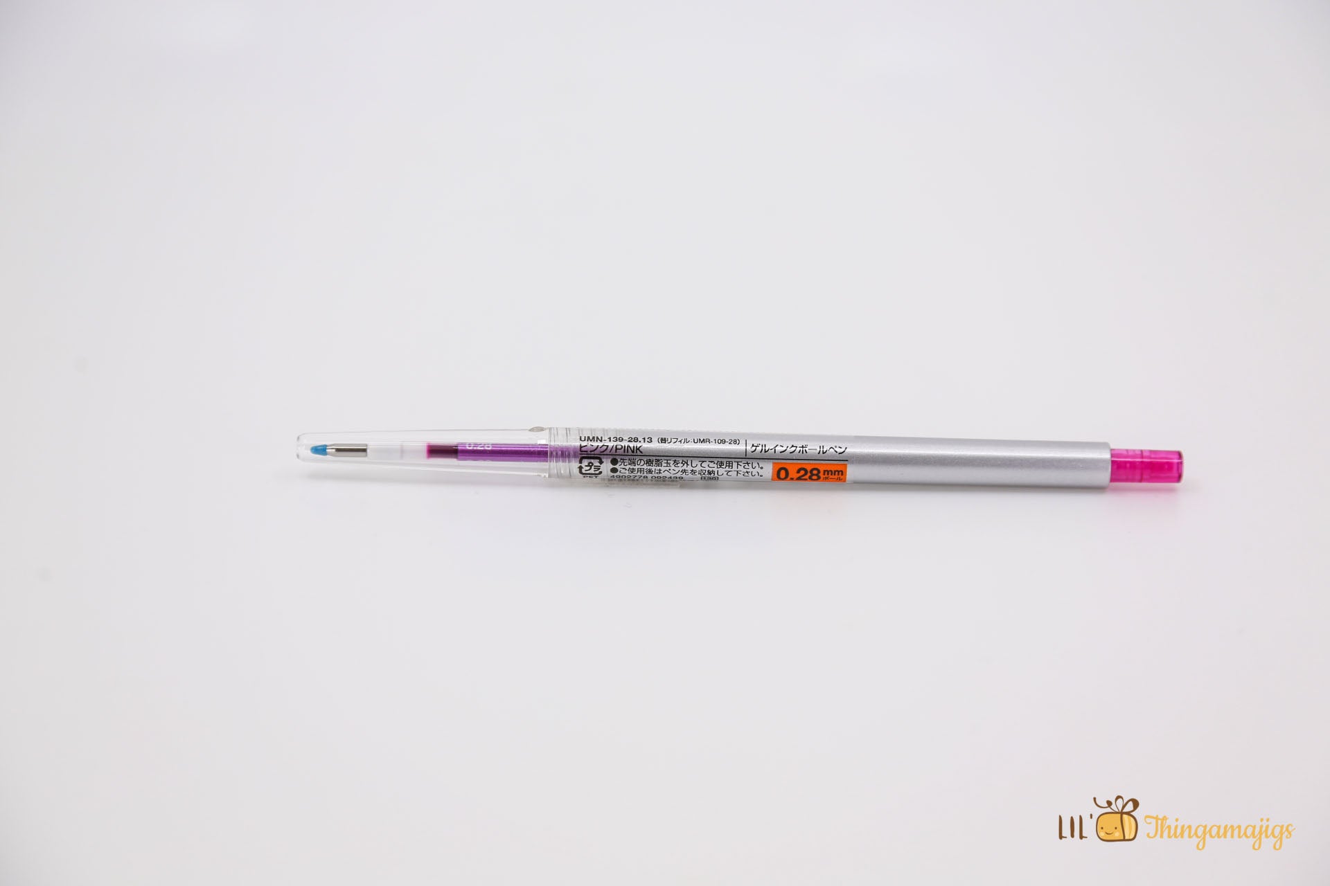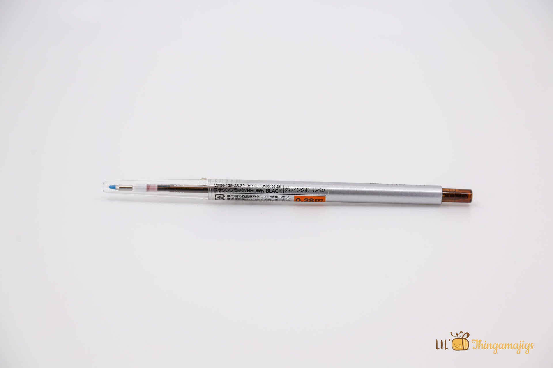 Uni Style Fit Standard Retractable Gel Pen - 0.28mm comes in a variety of colors. The body color matches the ink refill, but it can take any refill replacement, including the gel, ballpoint, and pencil refills.